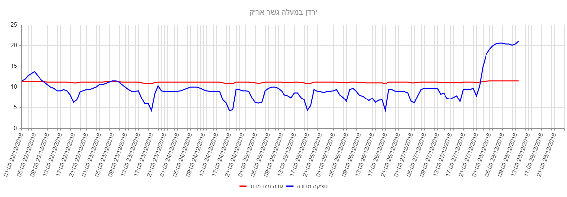 ספיקת הירדן בתחנת גשר אריק. רשות המים