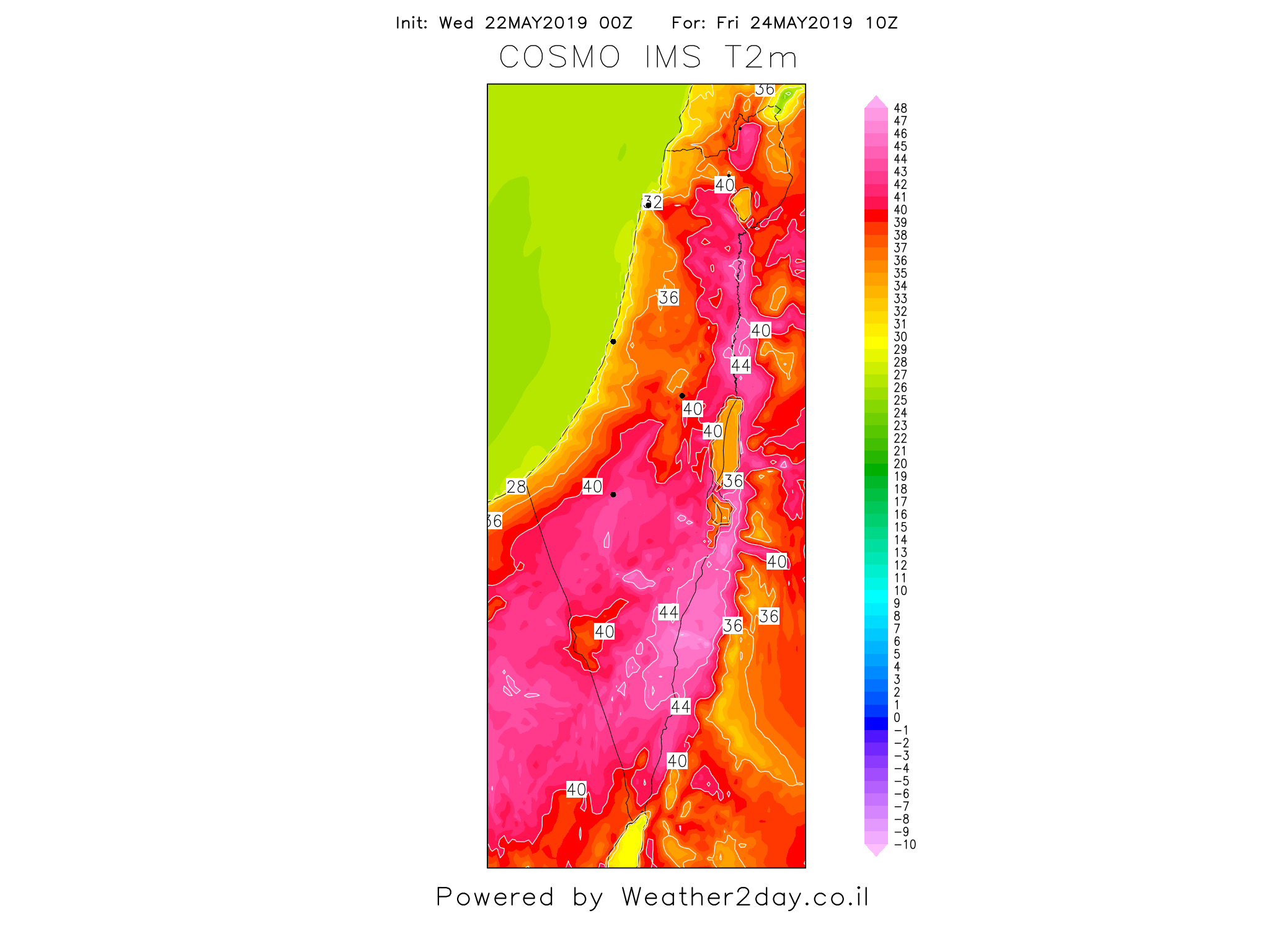 טמפרטורות חזויות ממודל COSMO ליום שישי בצהריים