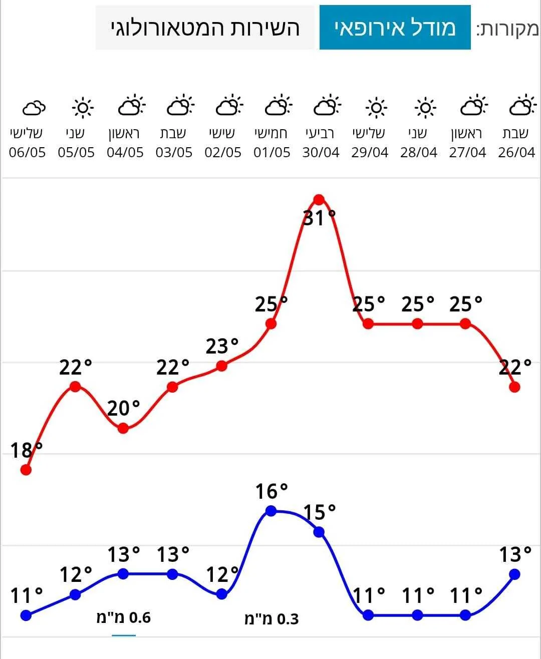 עדיין חם מהרגיל ב0.4° אבל מתקרבים לשם וגם נרד מתחת.
