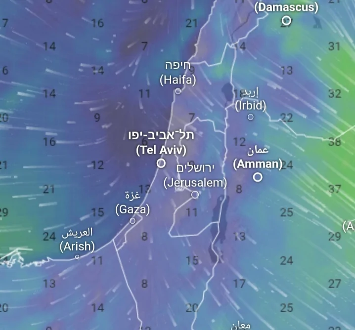 - אדי המים נדחסים בחזית הגל יחד עם הדרמת קו הגשם מאזור יבנה לקו אשקלון עזה אין שם