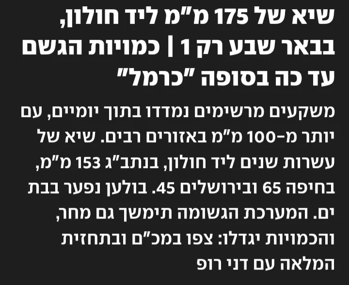 עוד יום בו ישבו המומחים וינתחו את התחזיות. בכל זאת, מערכת ראשונה לאחר יובש ארוך. בהצלחה להם ולנו ולכל ישראל. והעיקר שיהיה לברכה.