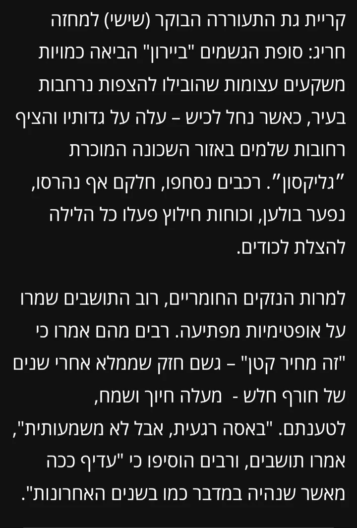 - אכן, גשמי זעף בעוטף הצפוני המוביל הבטוח