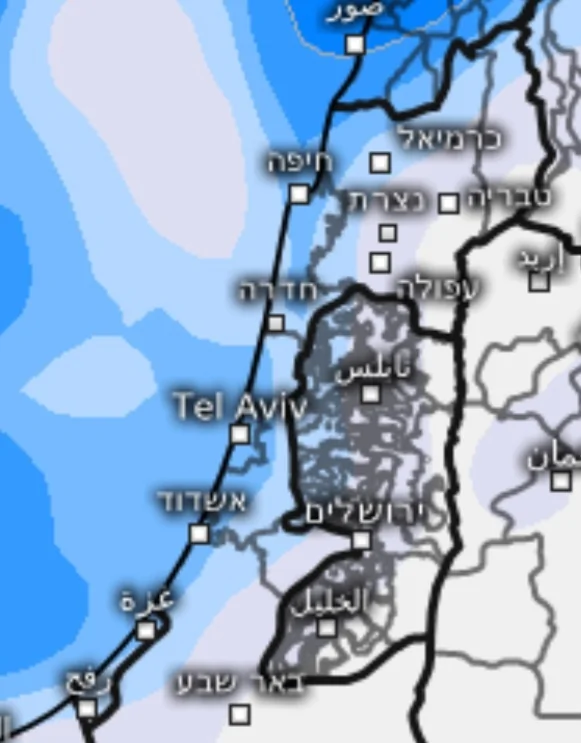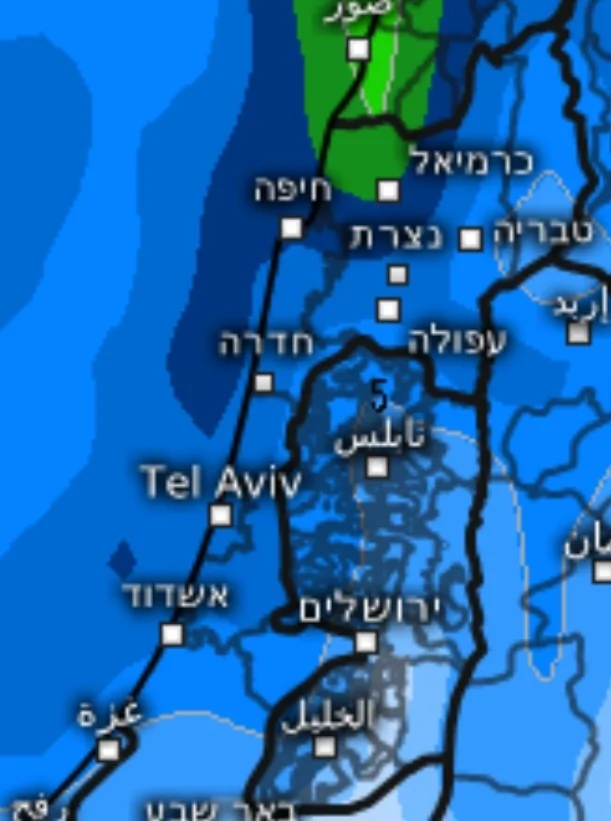 הגשם מתרכז בעיקר באזור החוף ורק מאוחר יותר הגשם מתחיל להיכנס לאזור המזרחי יותר בארץ