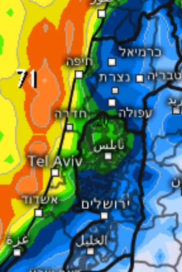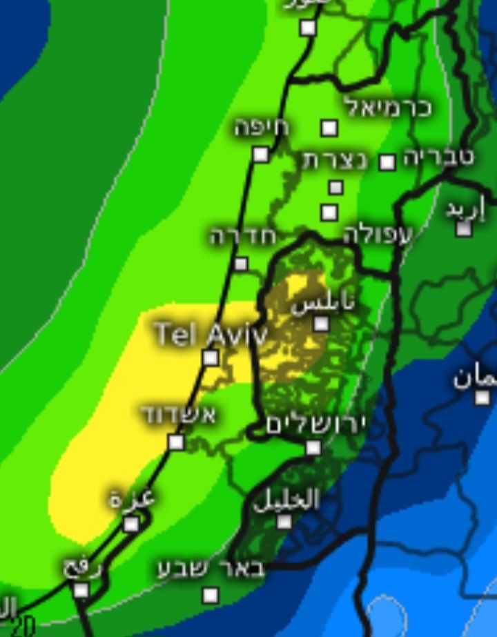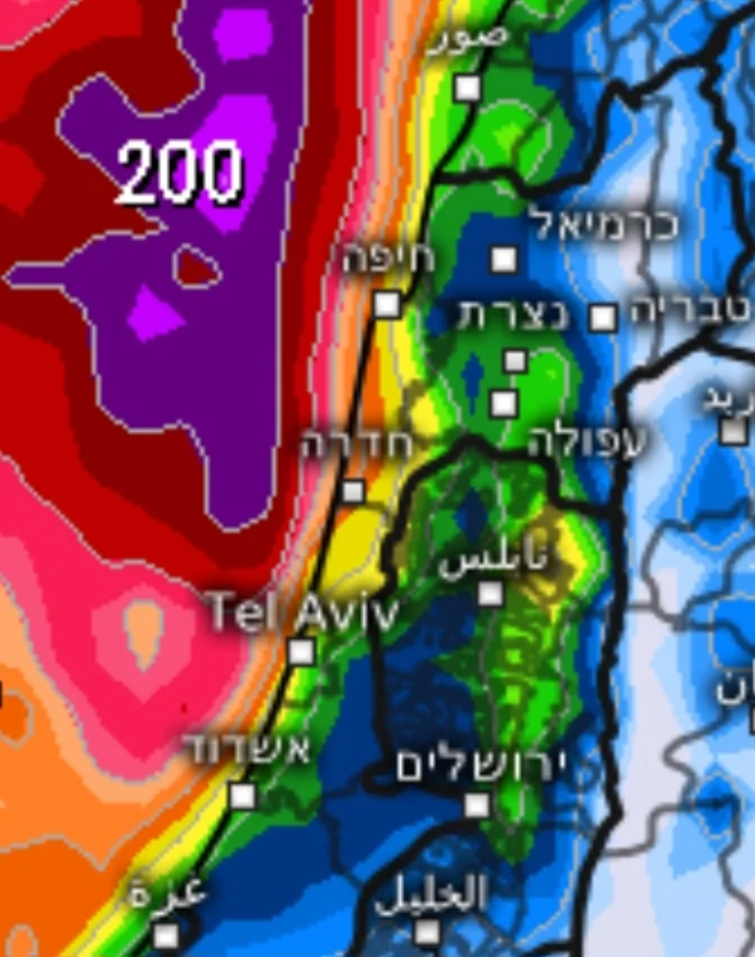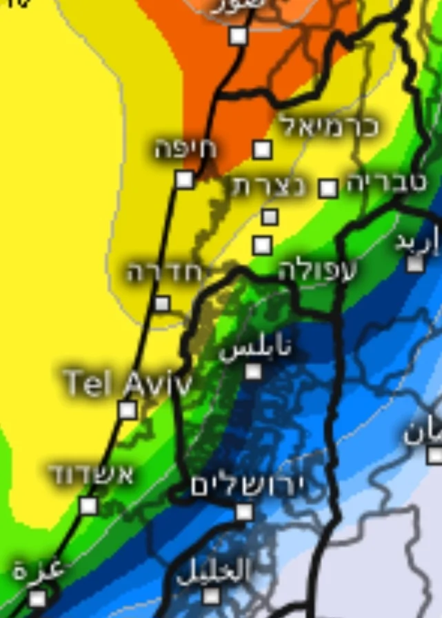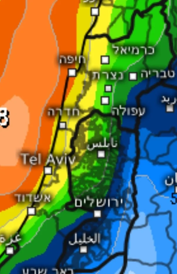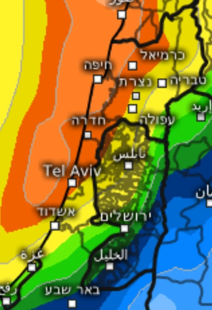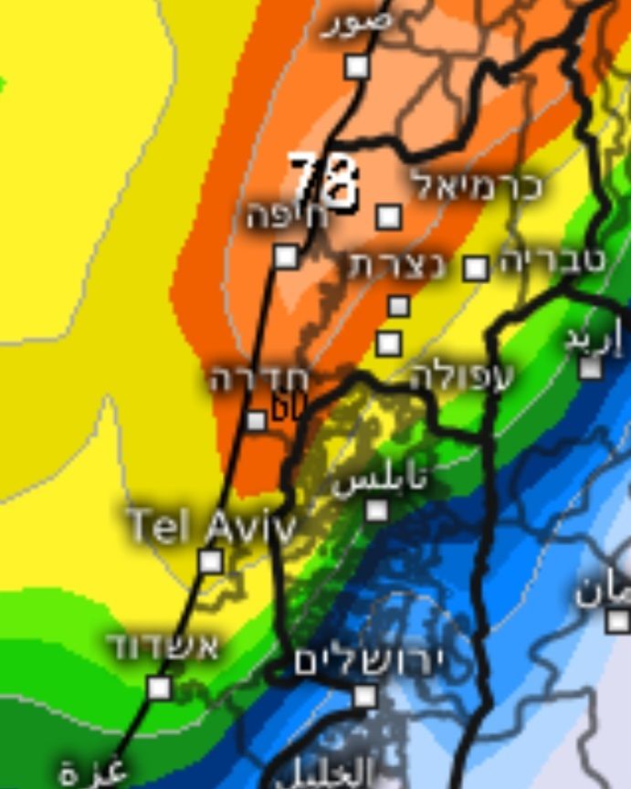 - המודל האירופי הערב בעדכון מצוין בעיקר למישור החוף, כראוי לתקופה בשנה איתן