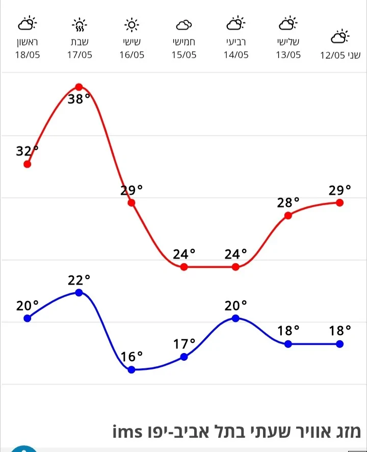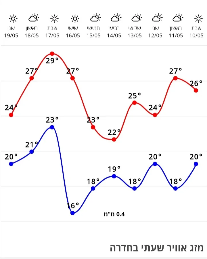 - מעונן ומזג אוויר נעים סך הכל, בבוקר ובלילה קר, יום נעים אפילו מעט חמים שי הנתנייתי