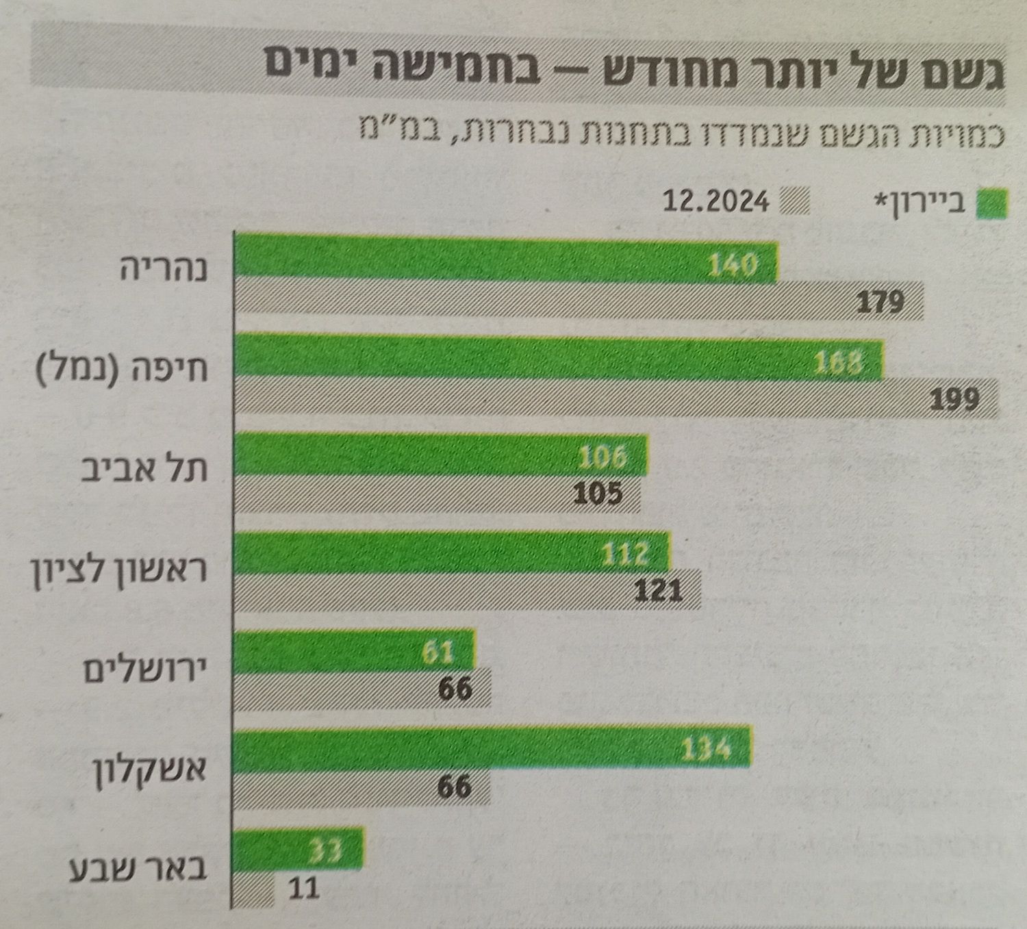 התעוררנו לבוקר של גשם מפתיע (עוצמה חלשה/בינונית למשך כרבע שעה) שלא נצפה בתחזית.