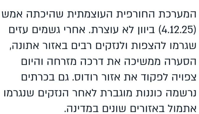- דיווחי מזג אוויר - יום רביעי 03/12/2025 מתנאל