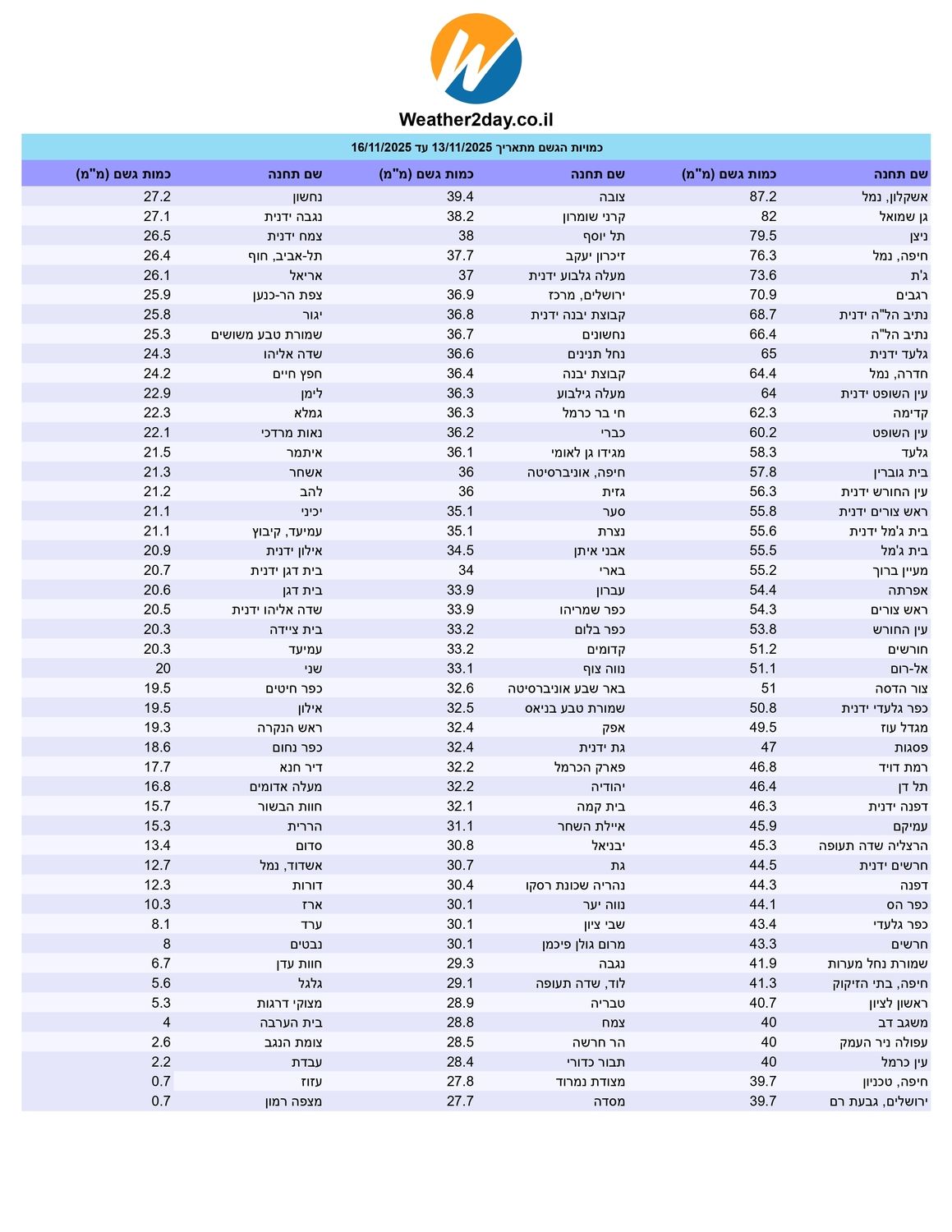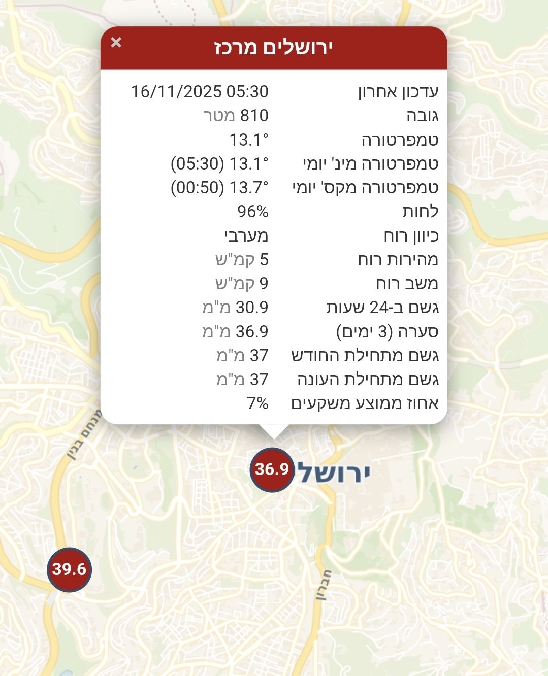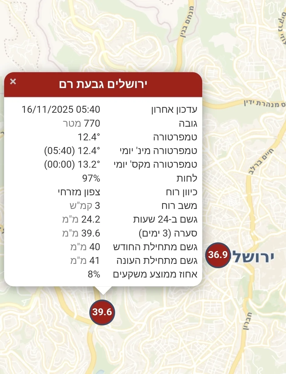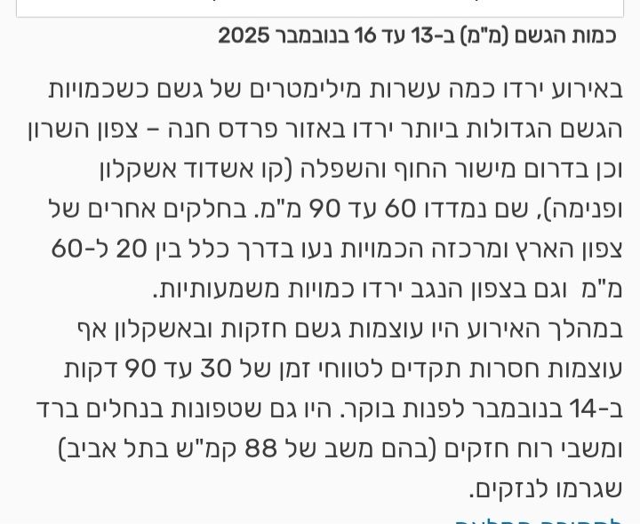 - דיווחי מזג אוויר - יום שלישי 11/11/2025 מתנאל