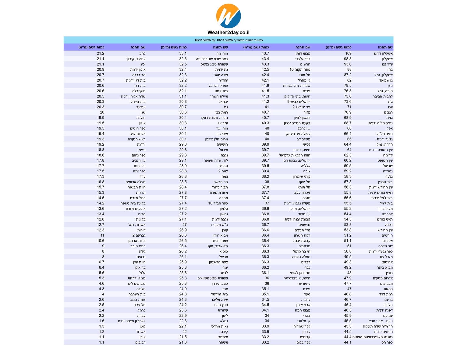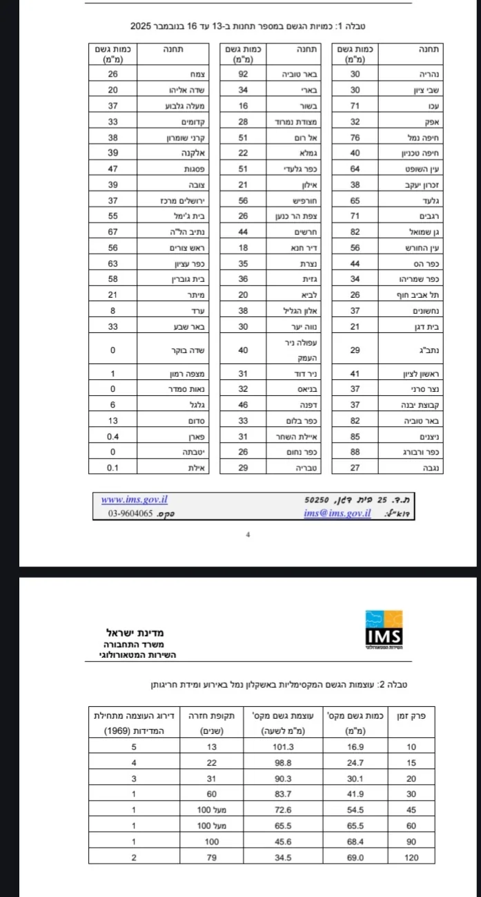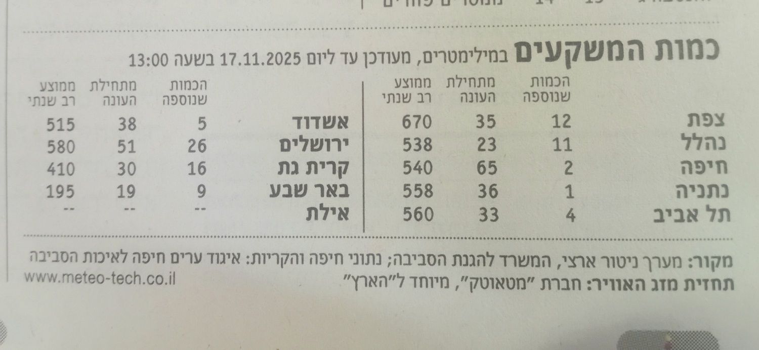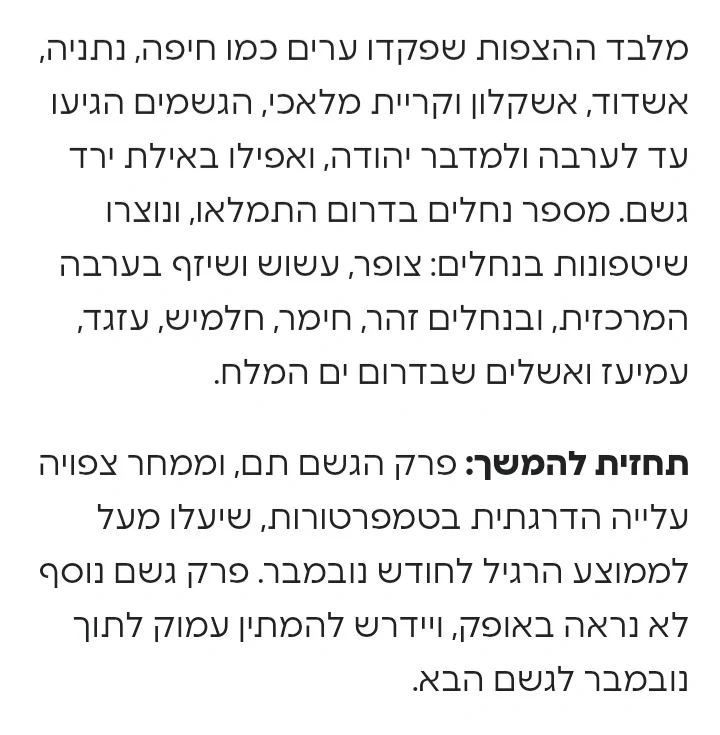- דיווחי מזג אוויר - יום שלישי 11/11/2025 מתנאל
