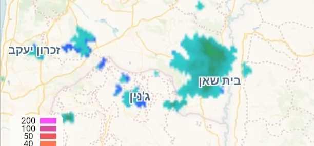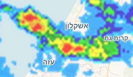 הגשם הכי חזק מתרכז בגבול הדרומי של הגוש הממטיר.