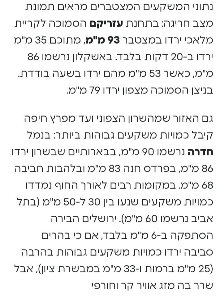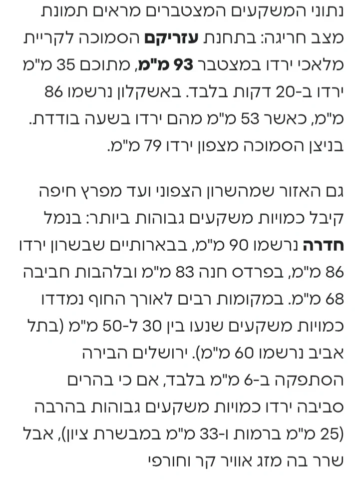 אני לא טוען שהמערכת חלשה, פשוט אחרי אוקטובר יבש, ולאור העובדה שזו המערכת היחידה ב23 הימים הראשונים של נובמבר אם לא יותר, זה לא מספיק. יחד עם נובמבר אנחנו צריכים ממוצע 100 מ"מ בחוף, 70 מ"מ פנימה.