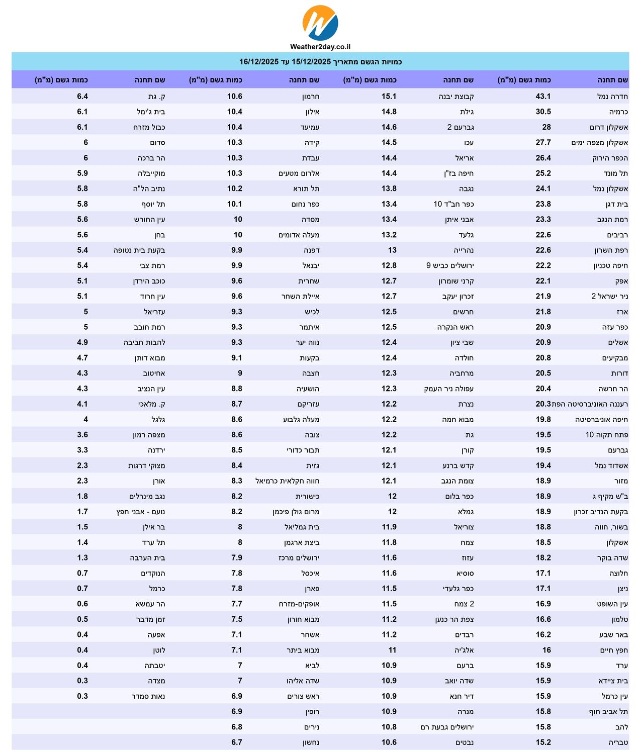 - דיווחי מזג אוויר יום שני 15/12/25 אביחי