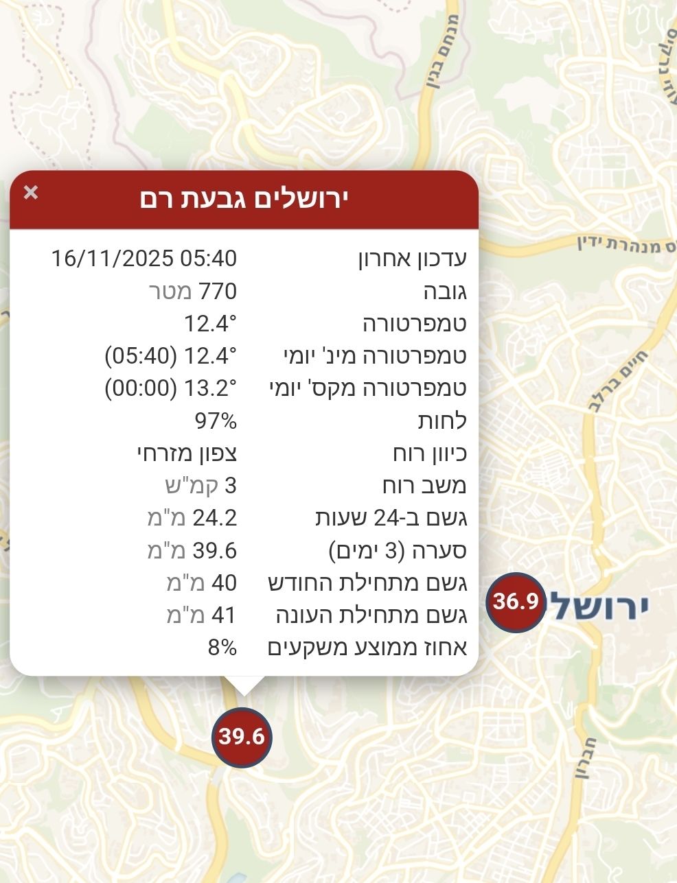 - דיווחי מזג אוויר - יום רביעי 12/11/2025 דובי