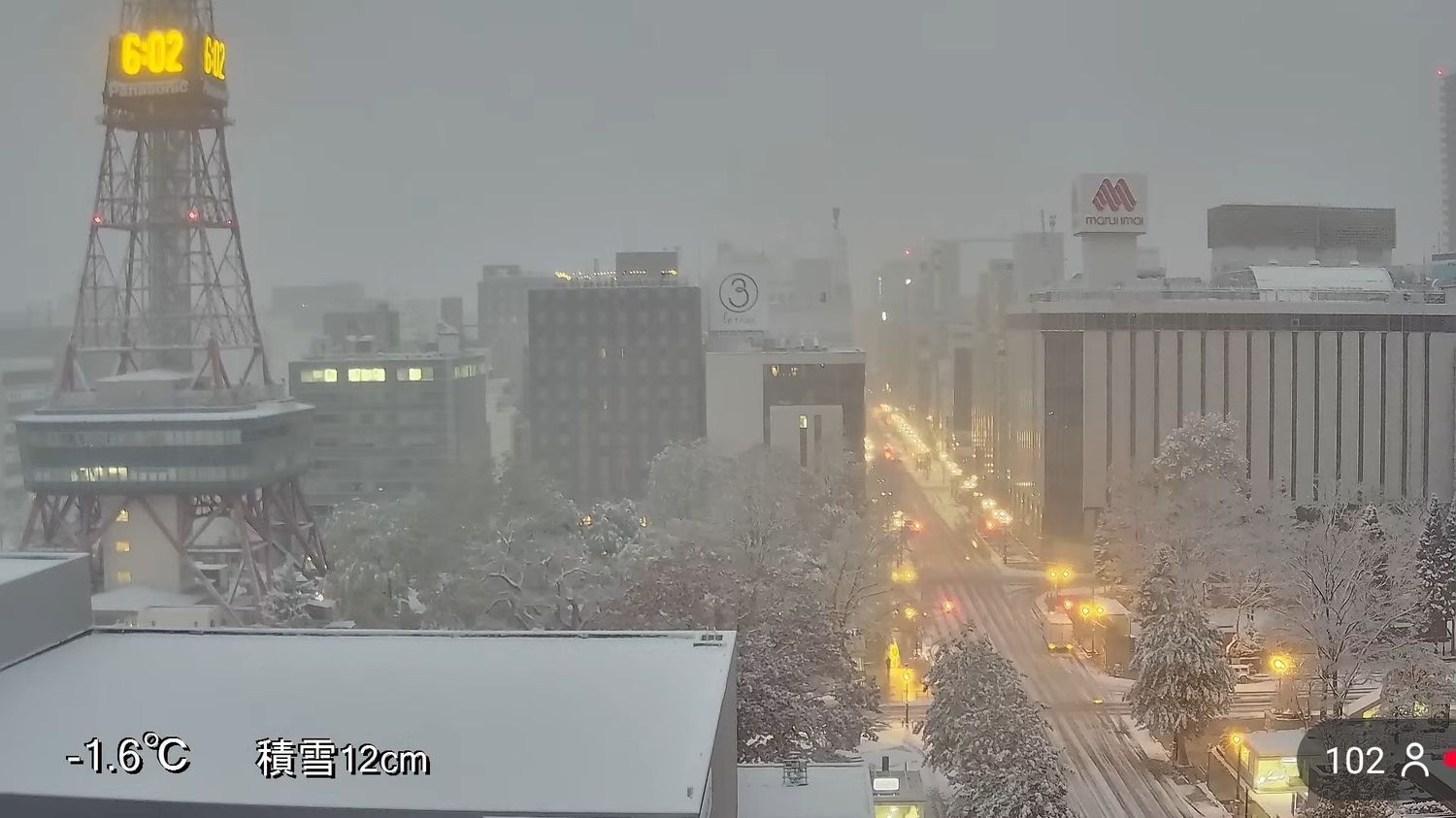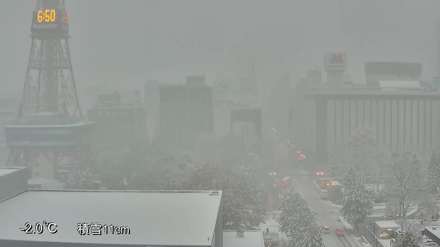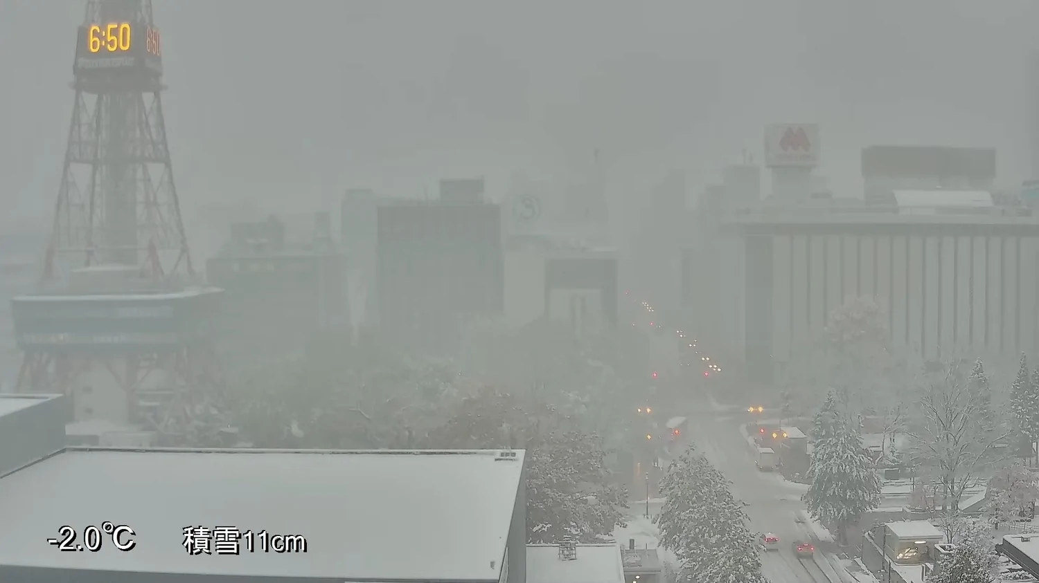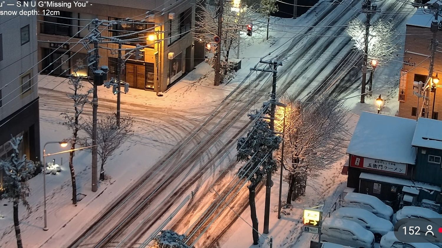 השלגים הכבדים ממשיכים לרדת בעיר גם בשעה זו (6:46 בבוקר שעון יפן).