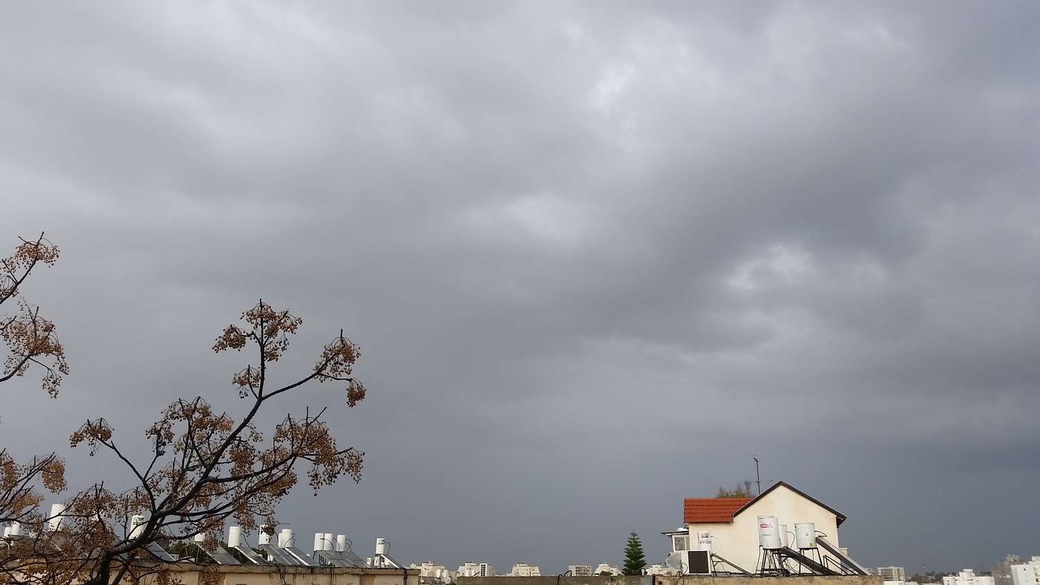 - גשם חזק החל לרדת בחיפה ושמיים שחורים ממערב אסף