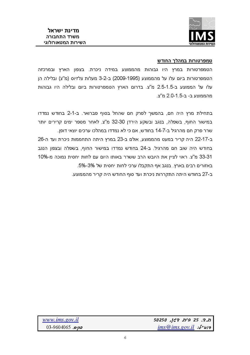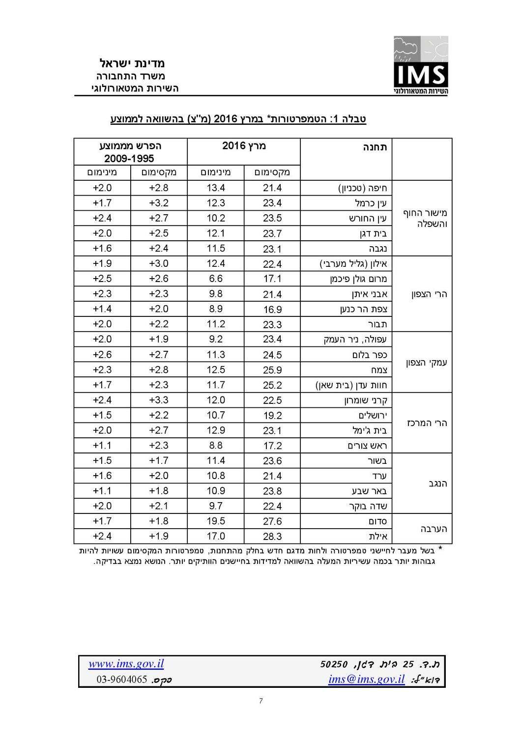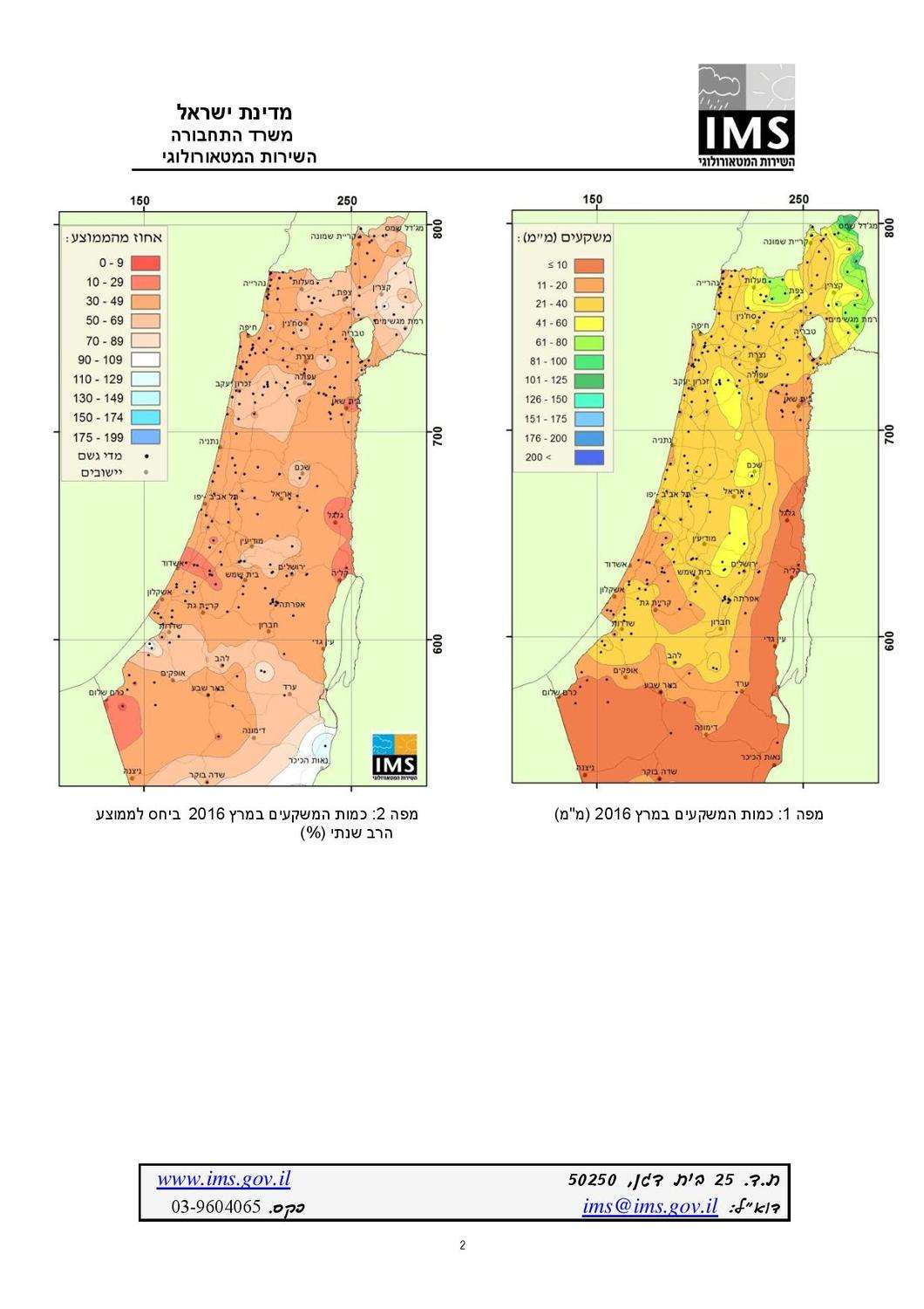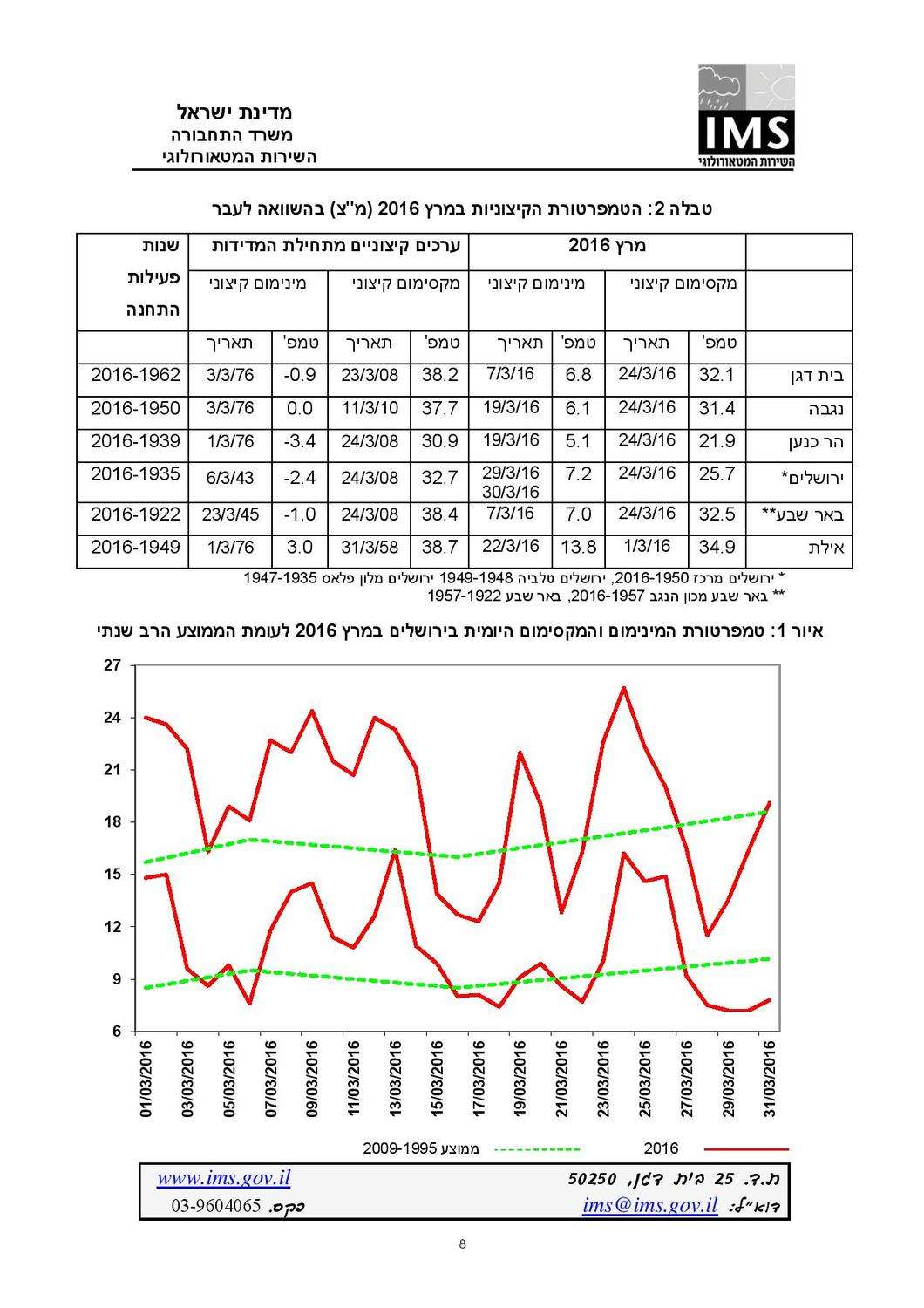 - סיכום חודש מרץ 2016 באדיבות השירות המטאורולוגי Weather2day