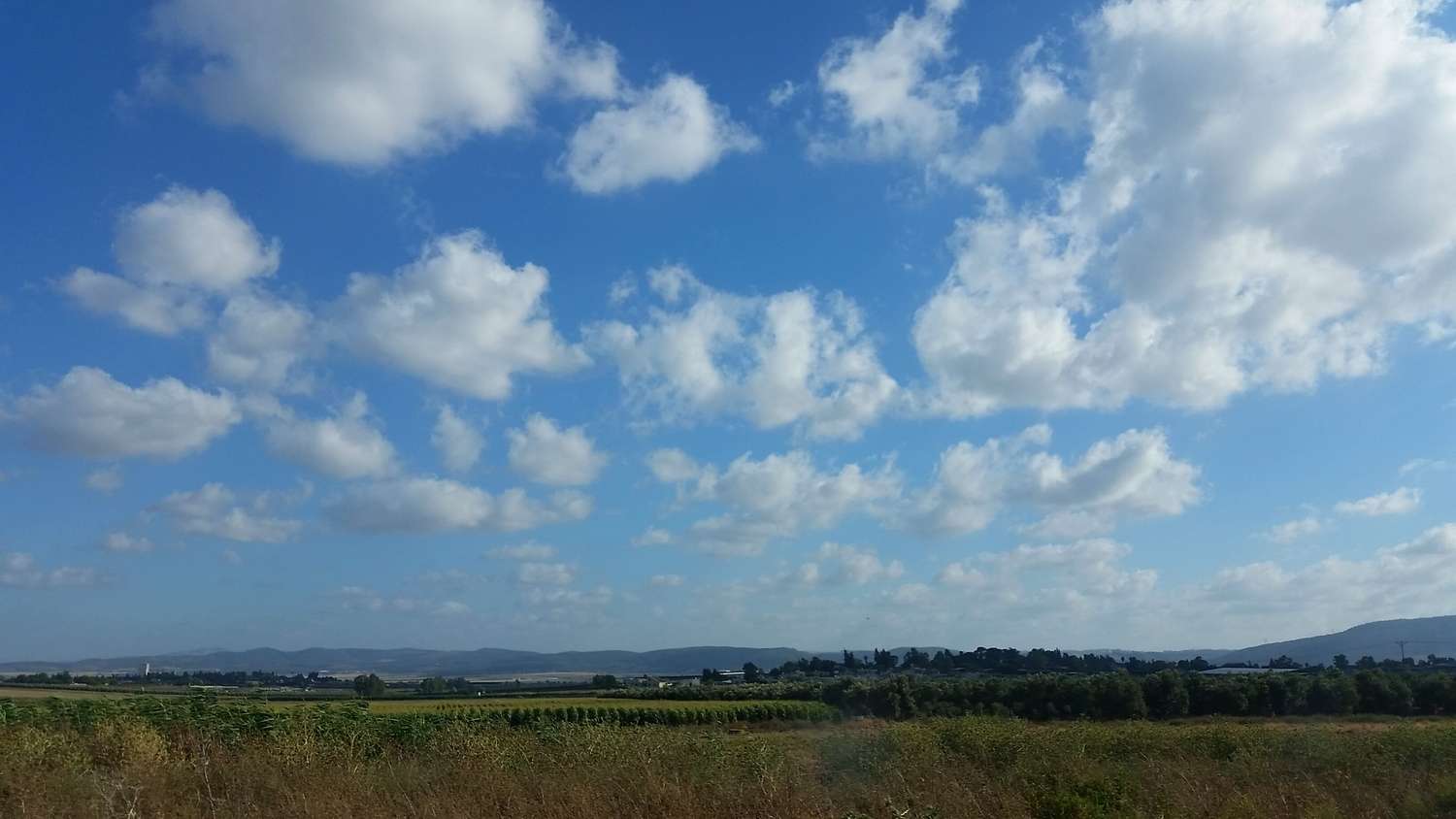 כאן יש פחות עננים אבל עדיין יש קצת פראקטוקומולוסים פה ושם. מנשבת רוח קלה עד ערה. האוויר חמים מעט.