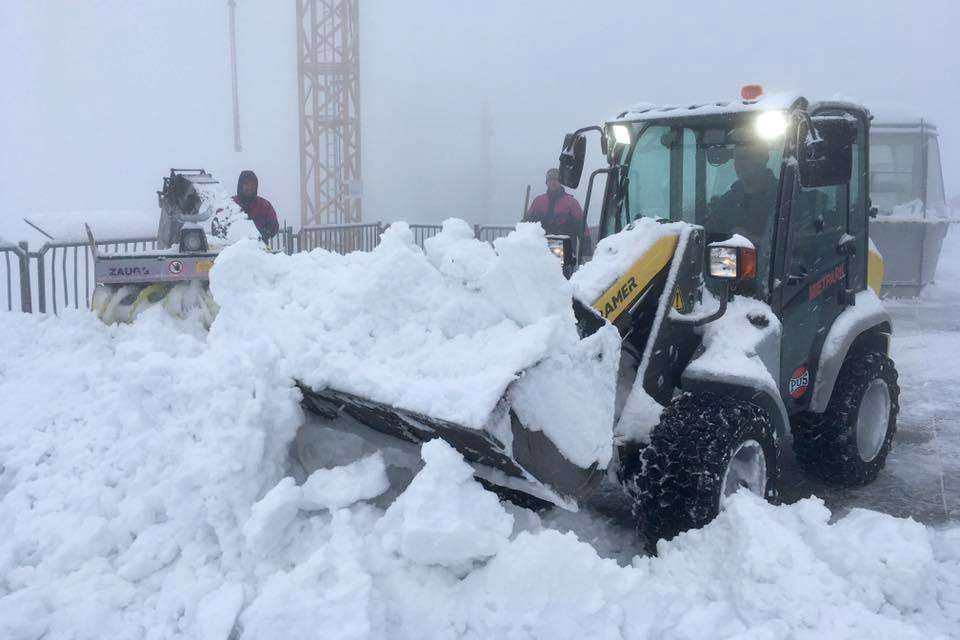 שלג כבד נערם על הר צוגשפיצה בגבול גרמניה אוסטריה