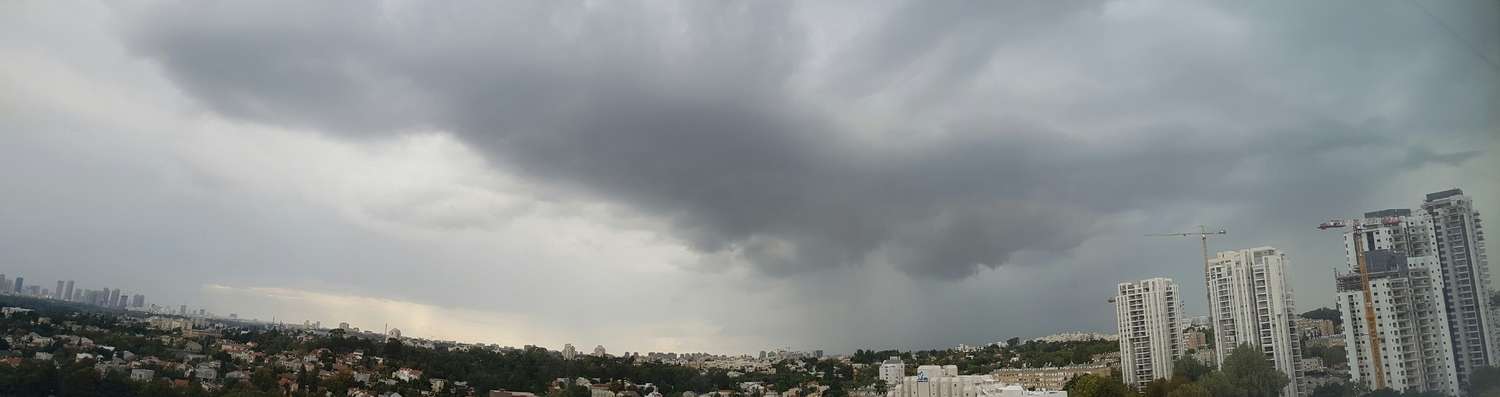 עננות חלקית נעשית במערב ומתקדמת הנה, הגשם חלף ואפשר לראות את הממטרים נופלים ממזרח