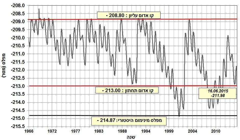 - מפלס הכנרת 1966-2015 - גרף Weather2day