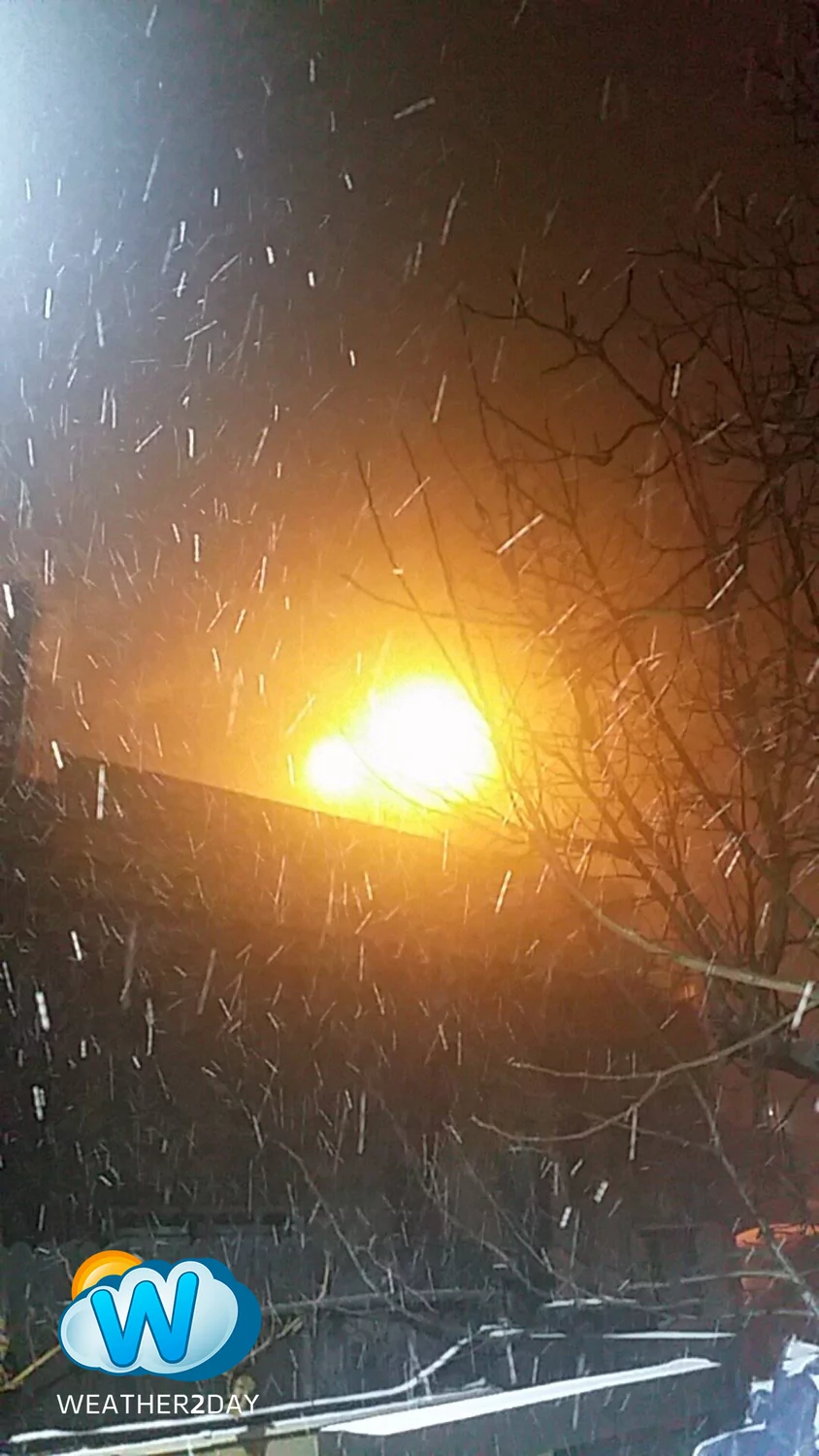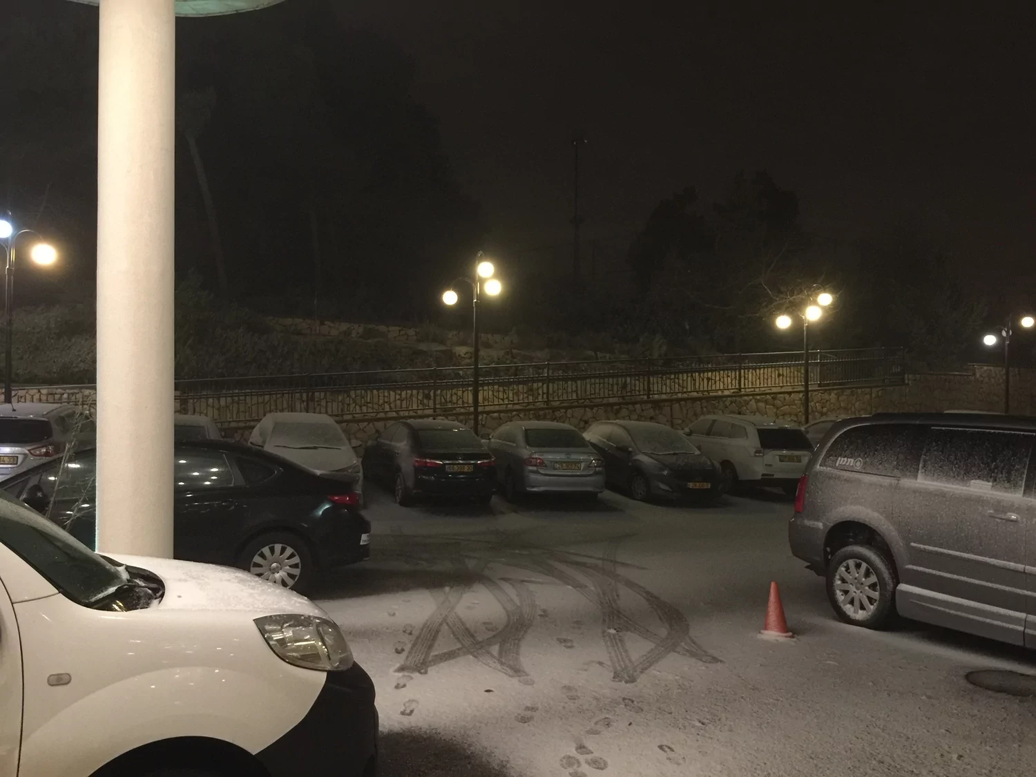 התחיל לרדת שלג לפני חצי שעה. מתחיל להערם על הקרקע. 0 מעלות