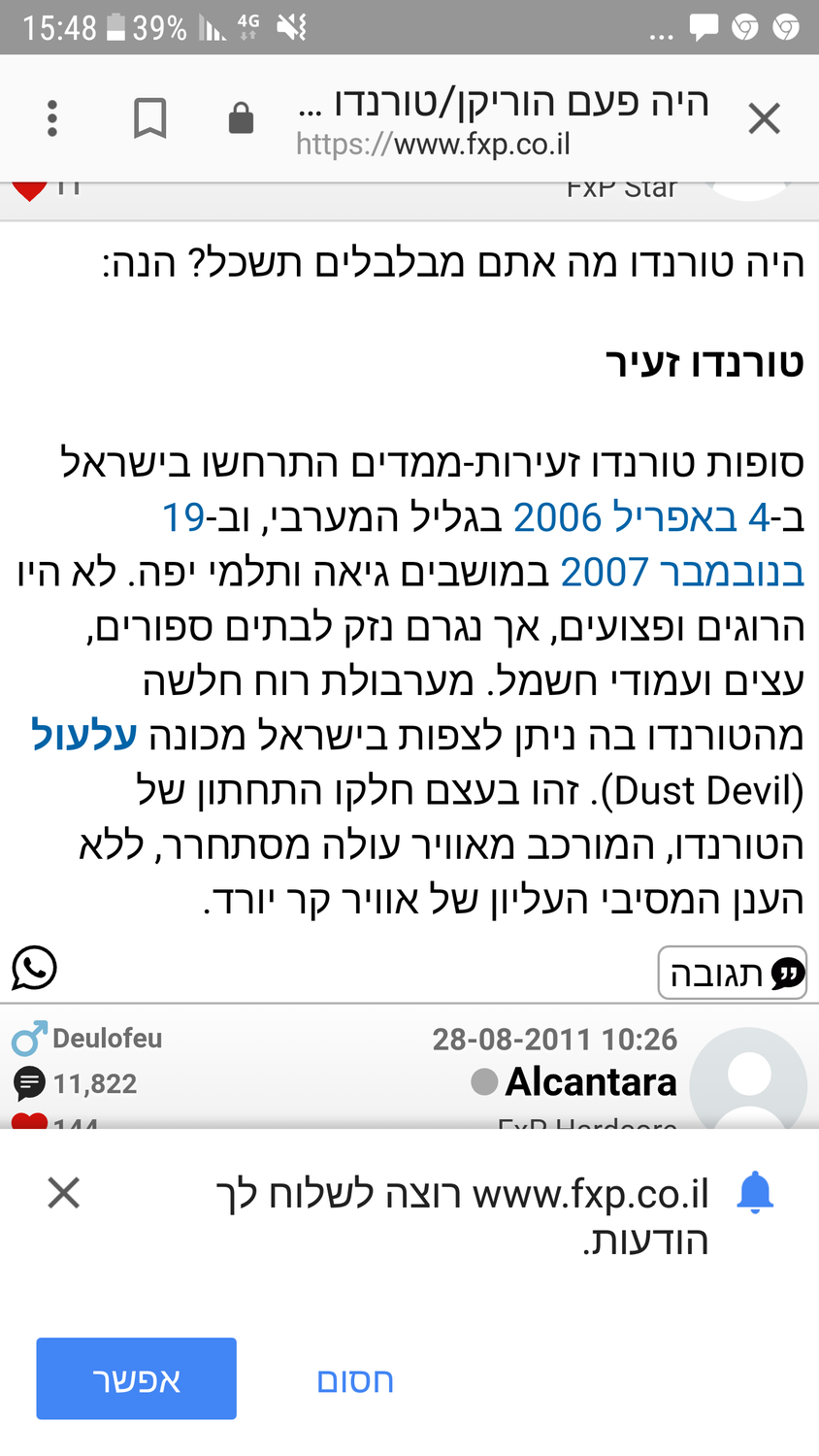 מלפני 10 שנים בערך ..טורנדו לא כזה נדיר בארץ כול תא על יכול ליצור בתנאים טובים אבל לרוב לא רואים אותם ומה גם זה לזמן קצר מאוד כמו נד מים .
