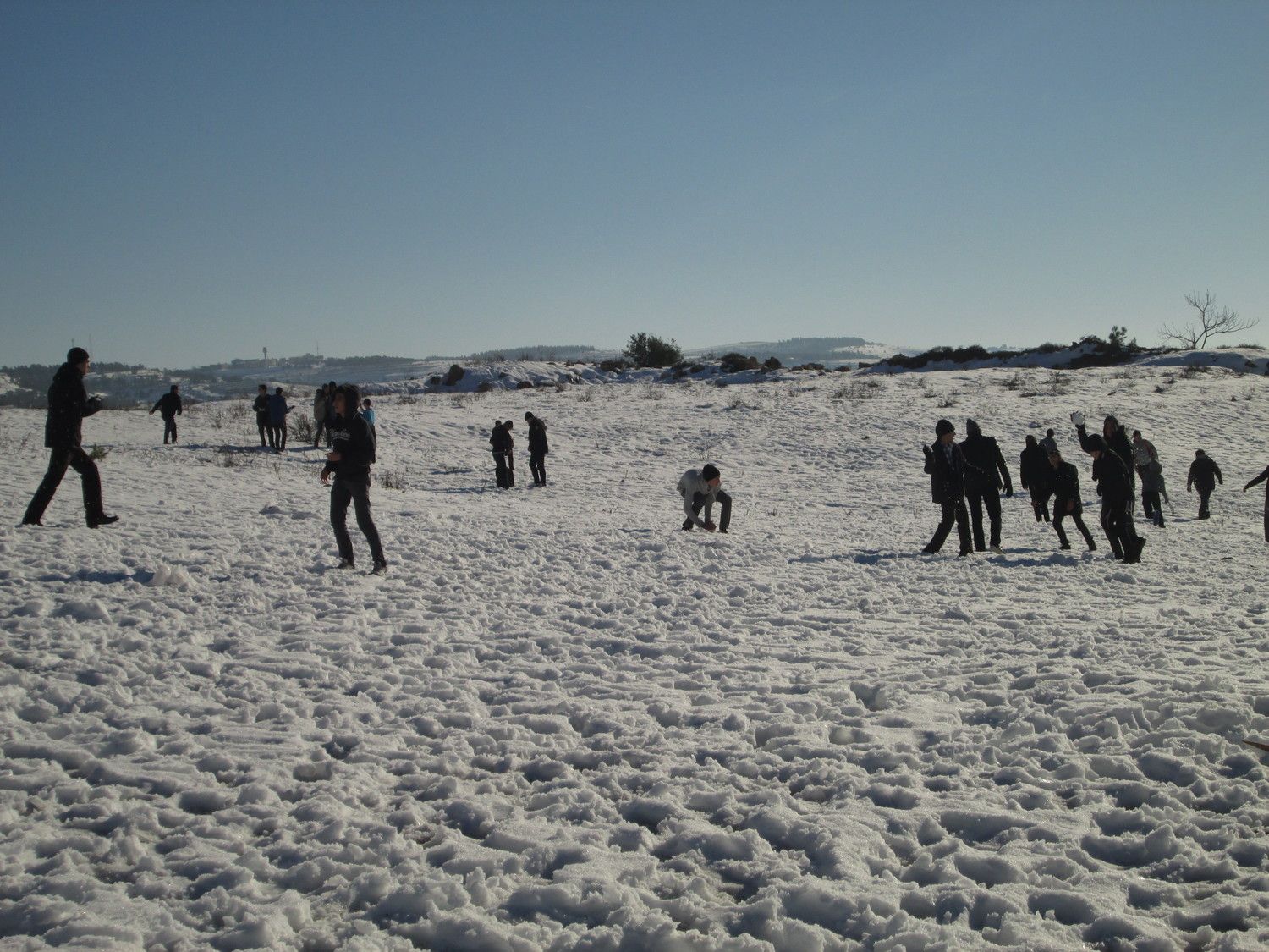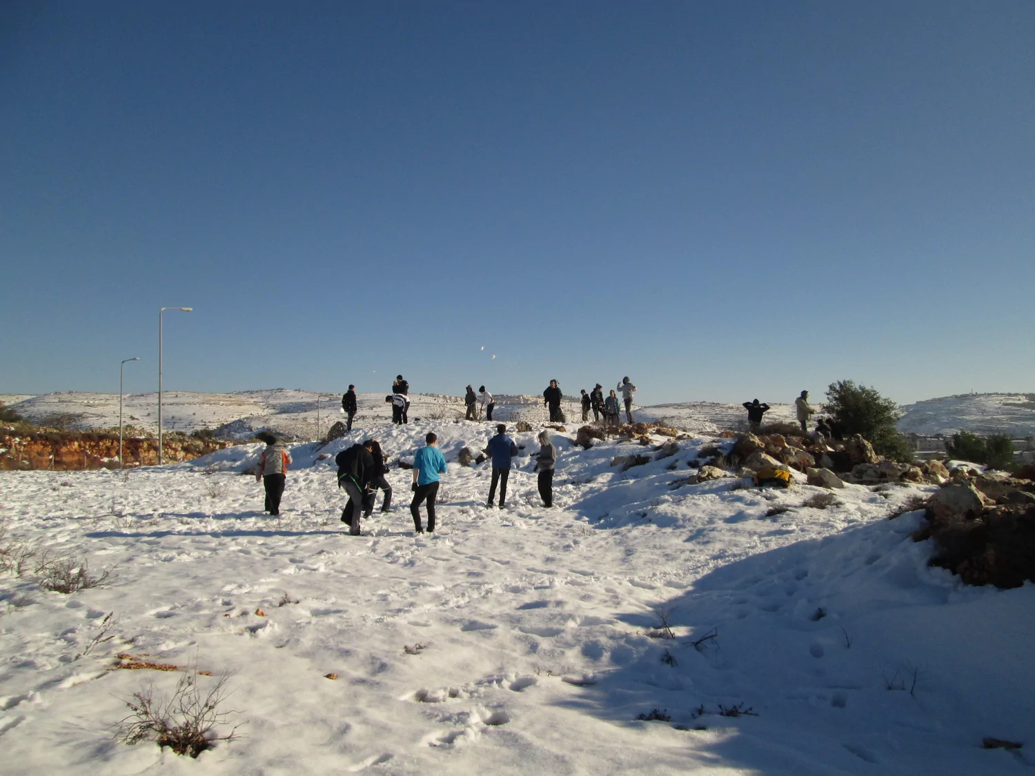 יומיים וחצי לאחר הסופה (ב-16/12/2013) יצאנו כל התיכון (בבית שמש) להרי י-ם המושלגים, כמויות מרשימות של שלגים כיסו את כל ההרים מסביב.