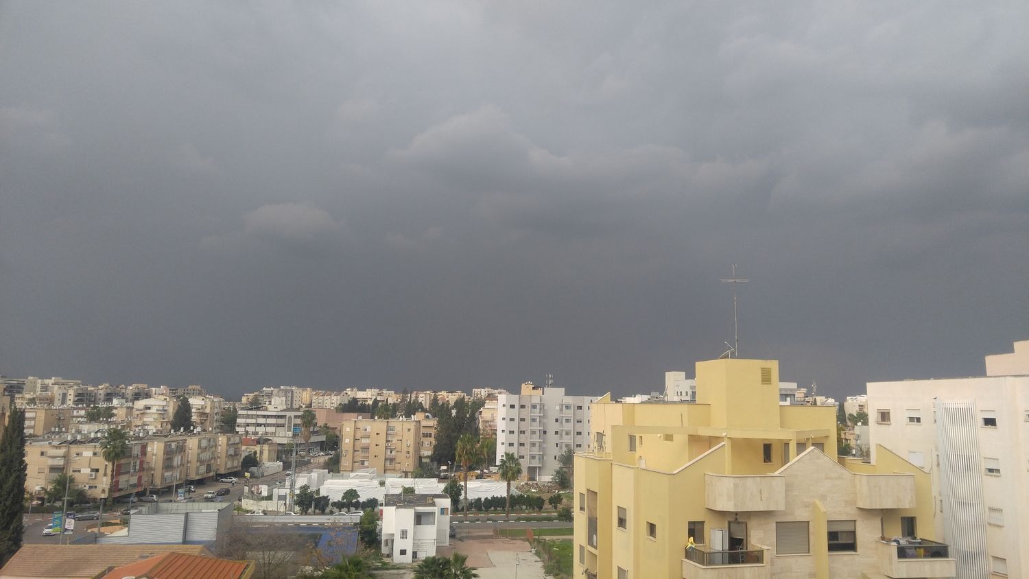 - הפוגה בגשמים ומהעננות השחורה והמאסיבית בשעה האחרונה תום, קריות