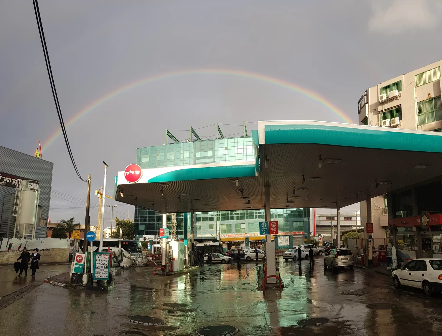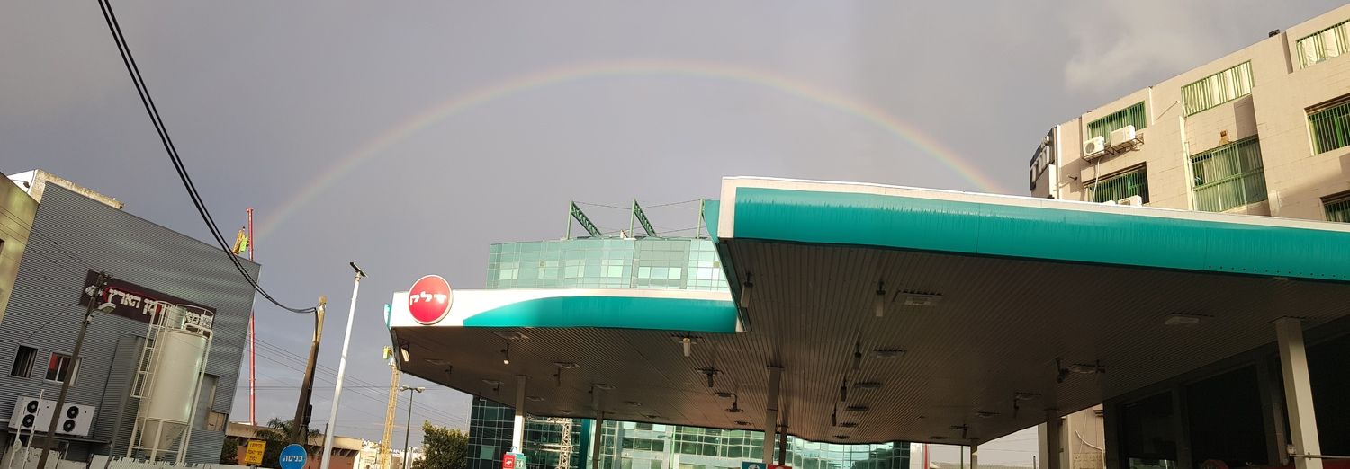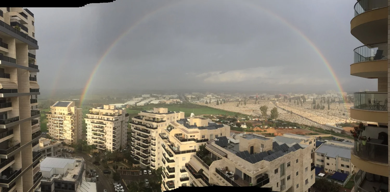 - איזה יפה זה נראה כאילו הקשת יוצאת מהבניין! גיא