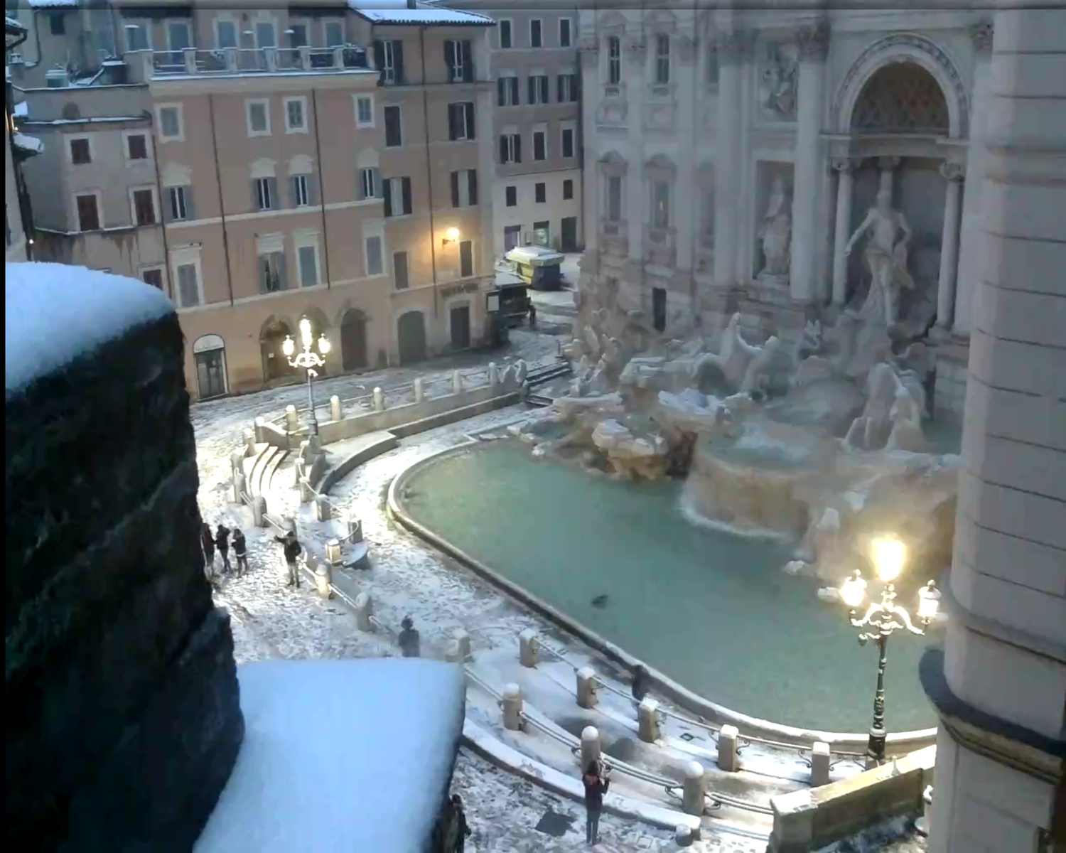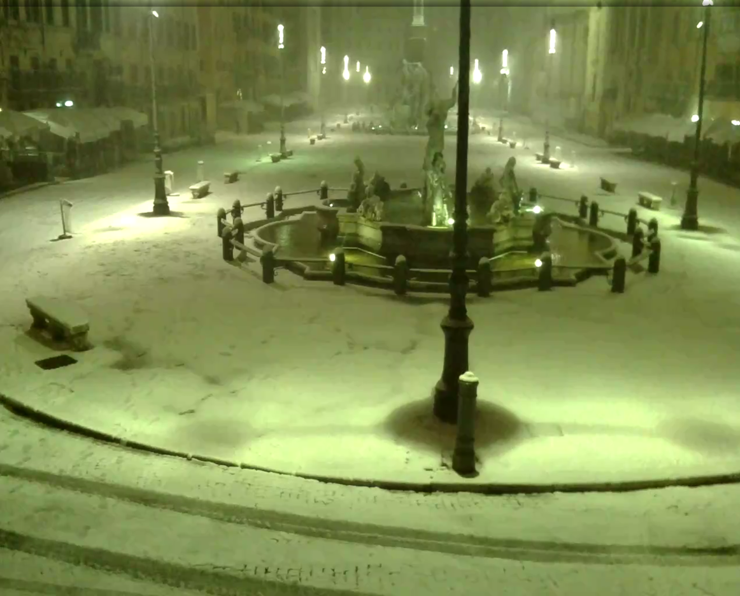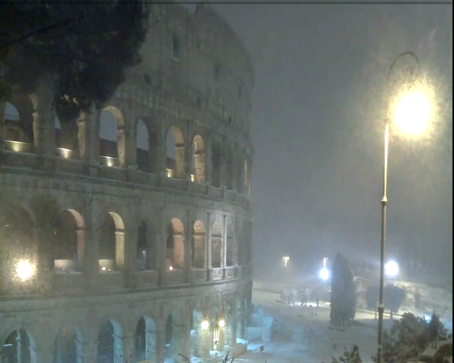 רומא מושלגת כבר כמה שעות והשלגים אף נערמו בעיר. הטמפ' בעיר כעת עומדת על 0 מעלות.