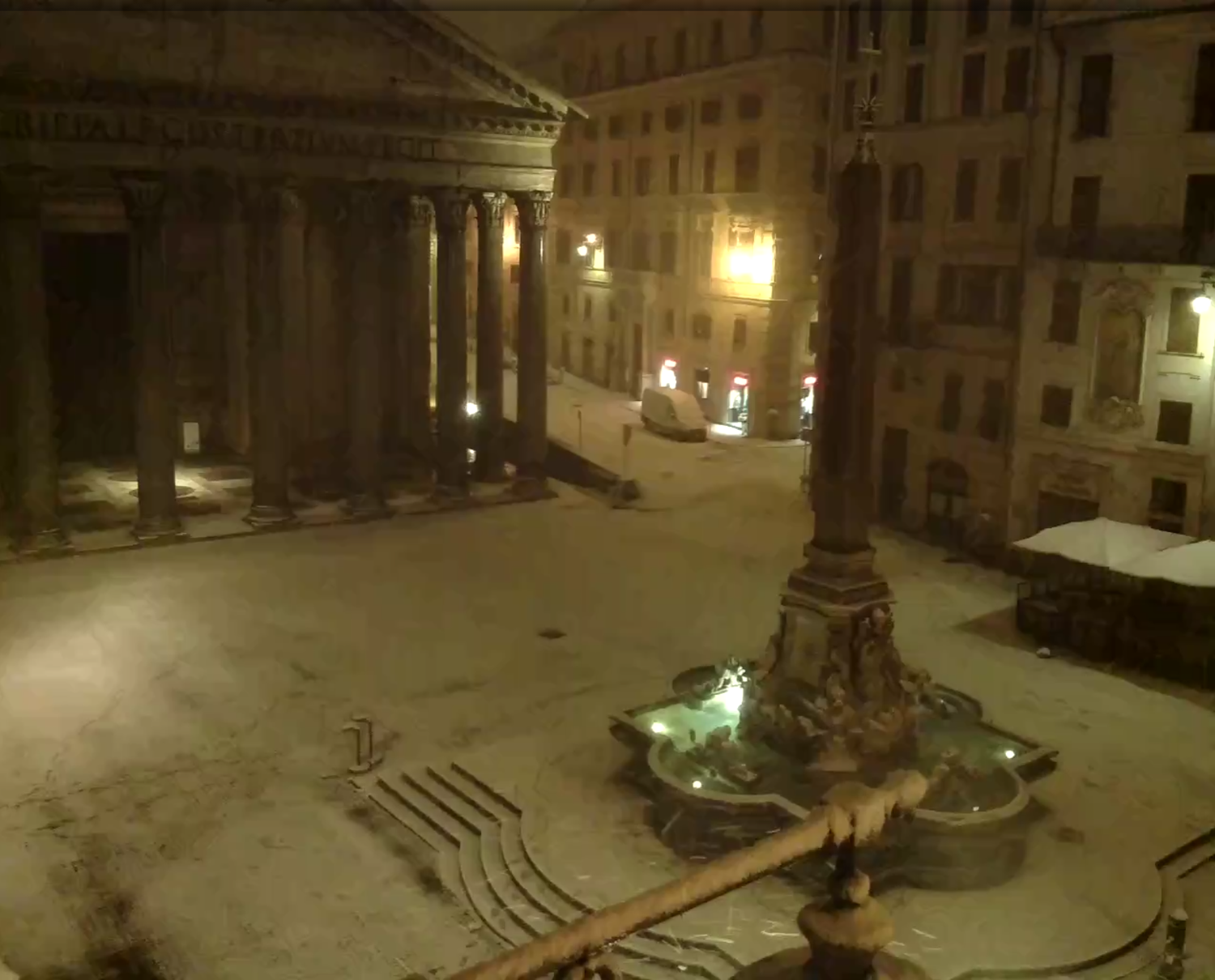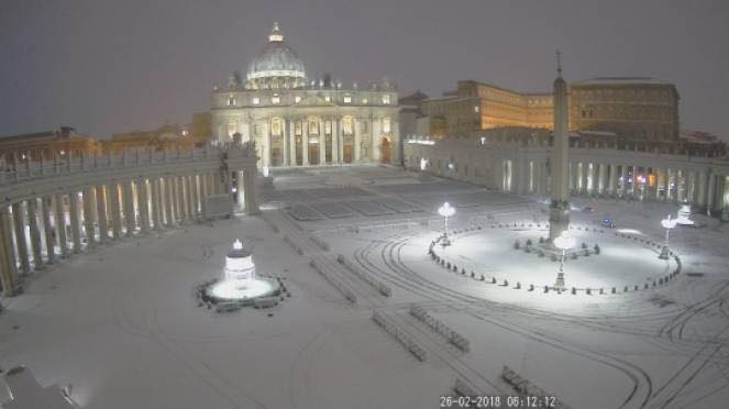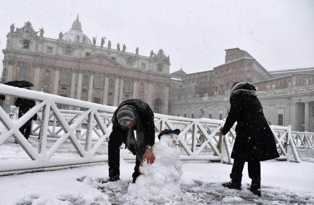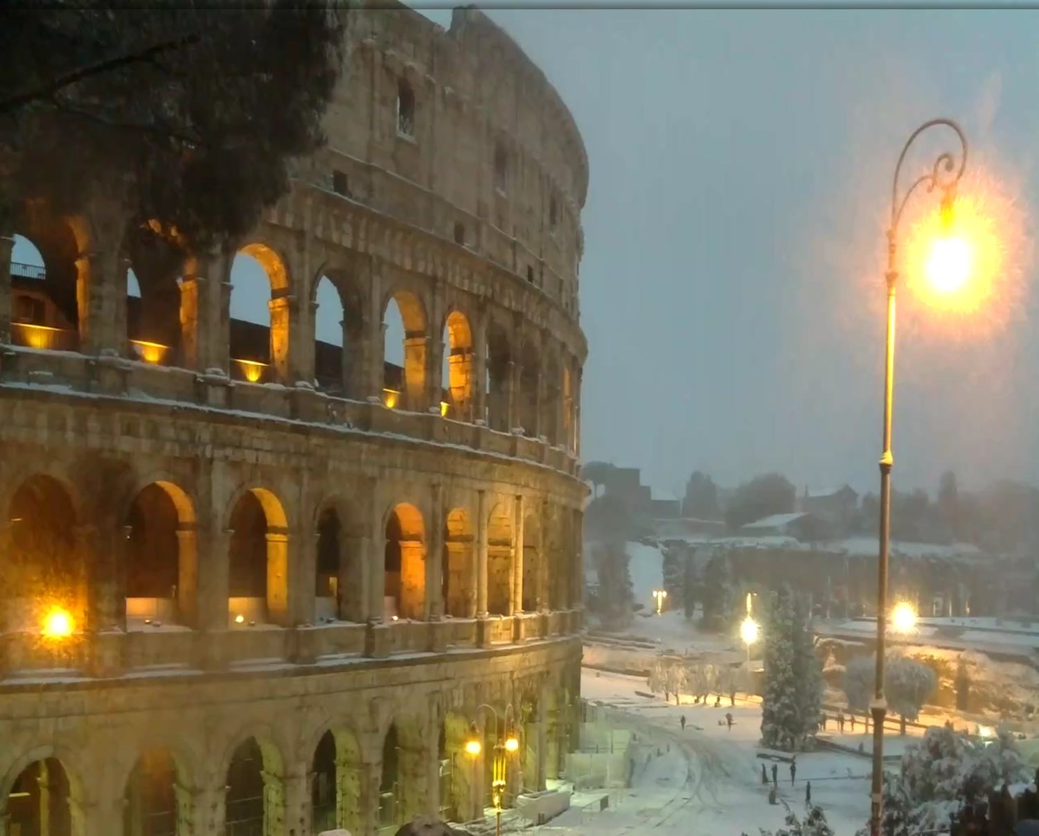 רומא מושלגת כבר כמה שעות והשלגים אף נערמו בעיר. הטמפ' בעיר כעת עומדת על 0 מעלות.