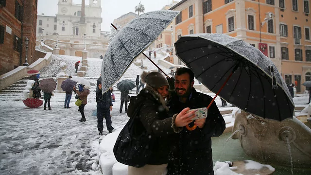 - שלג נדיר בבירת איטליה: רומא נצבעה בלבן אלעד