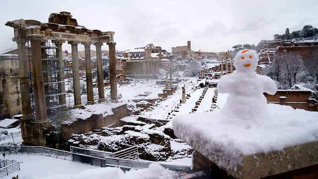 שלג נדיר בבירת איטליה: רומא נצבעה בלבן