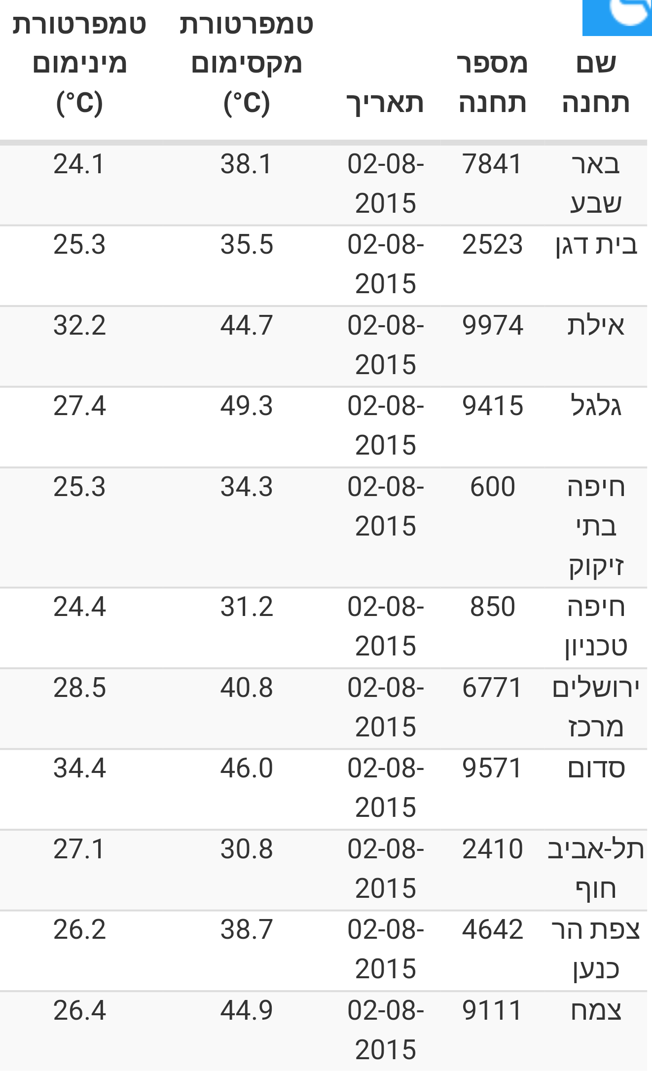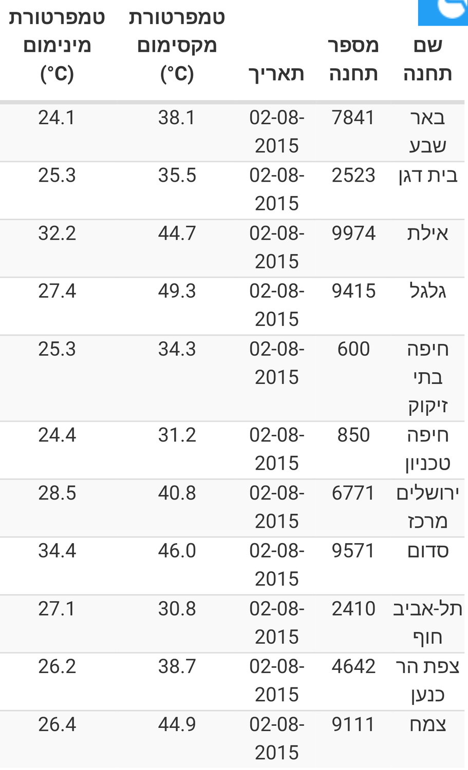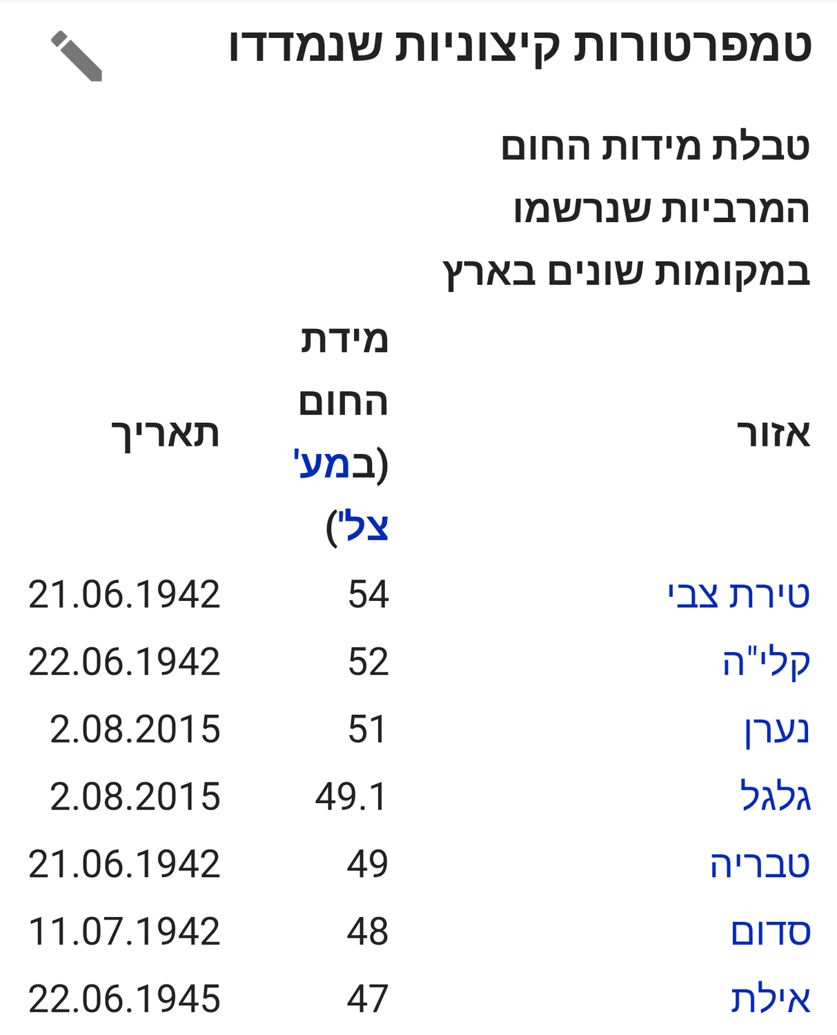 - הטמפרטורות הקיצוניות ביותר שנמדדו בארץ: אבי - פרדס כץ