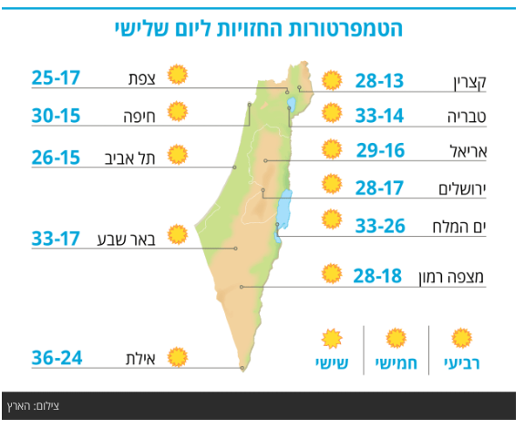 לילה טוב לכל גולשי הפורום! תחזית מזג האוויר למחר לפי אתר הארץ