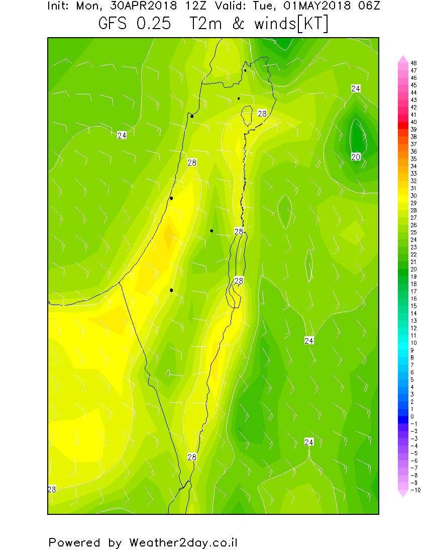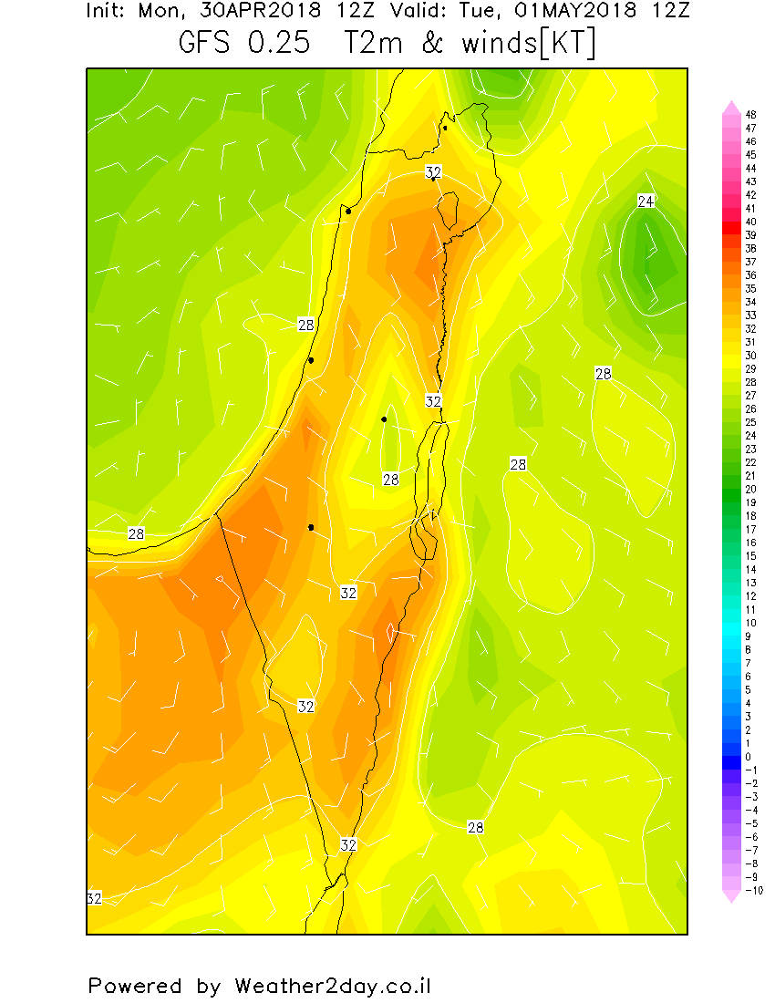 - תחזית מזג האוויר ליום שלישי - 01/05/18 חם מאוד כבר משעות הבוקר, יתכנו ממטרים מקומיים Weather2day