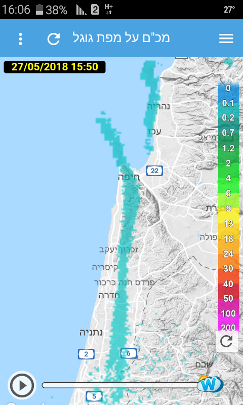 - הפתעה!!! המכ"ם מתעורר מול חופי הצפון. לכאורה אני הולך לקבל גשם נחמד יאיר