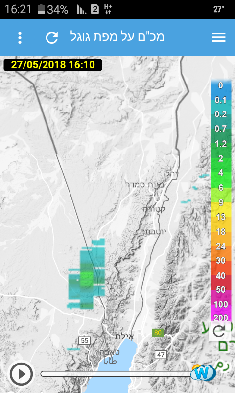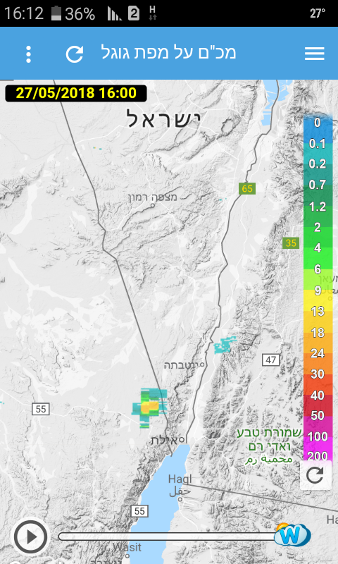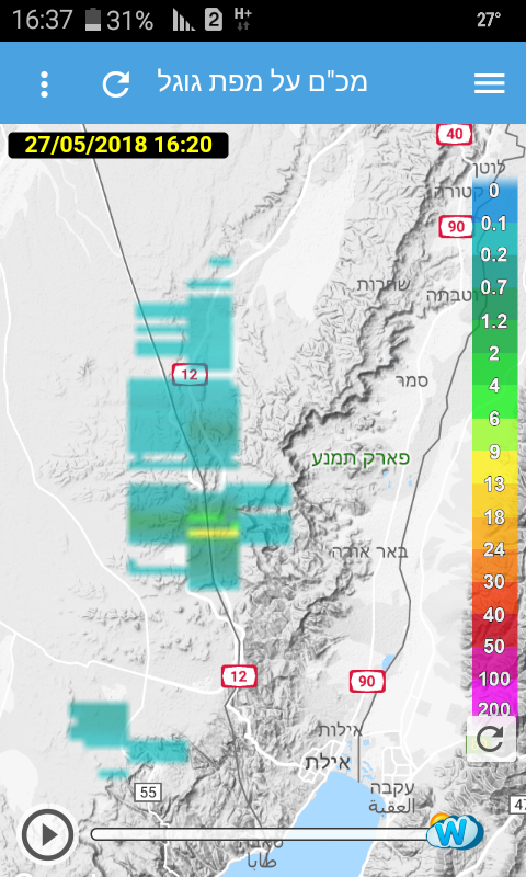 - לפי המכ"מ אזור הר שני צפונית לאילת (ליד הקניון האדום) קיבל גשם חנוך