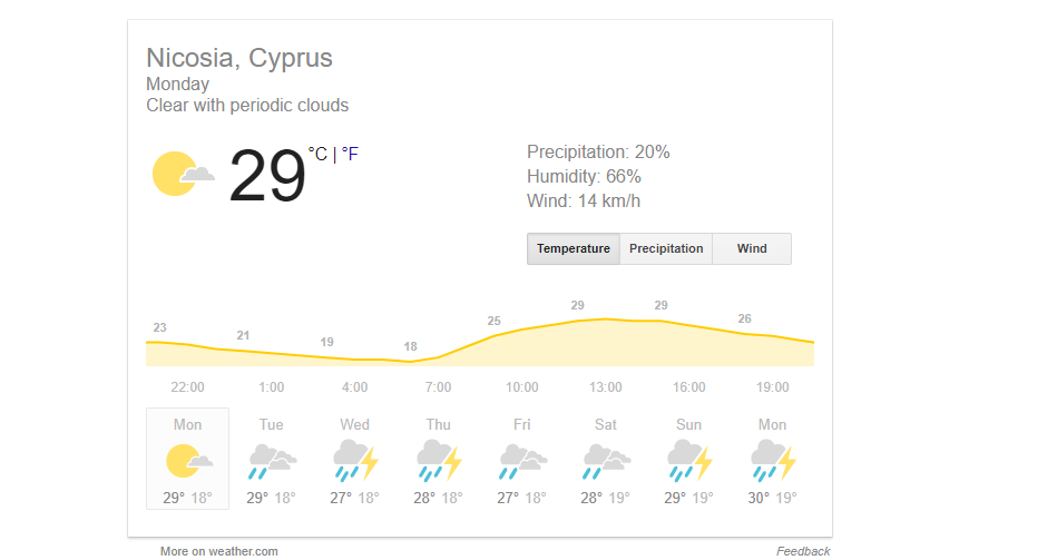 - תסתכלו איזה שבוע יש לניקוסיה בקפריסין! להזכירכם זו עיר עם אקלים ים תיכוני. מירן-נחלת יצחק