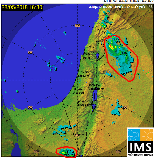 האזורים הדרומיים והמזרחיים של הארץ קיבלו היום גשמים מקומיים מלווים בסו"ר בדיוק כמו הצפי בתחזית.
