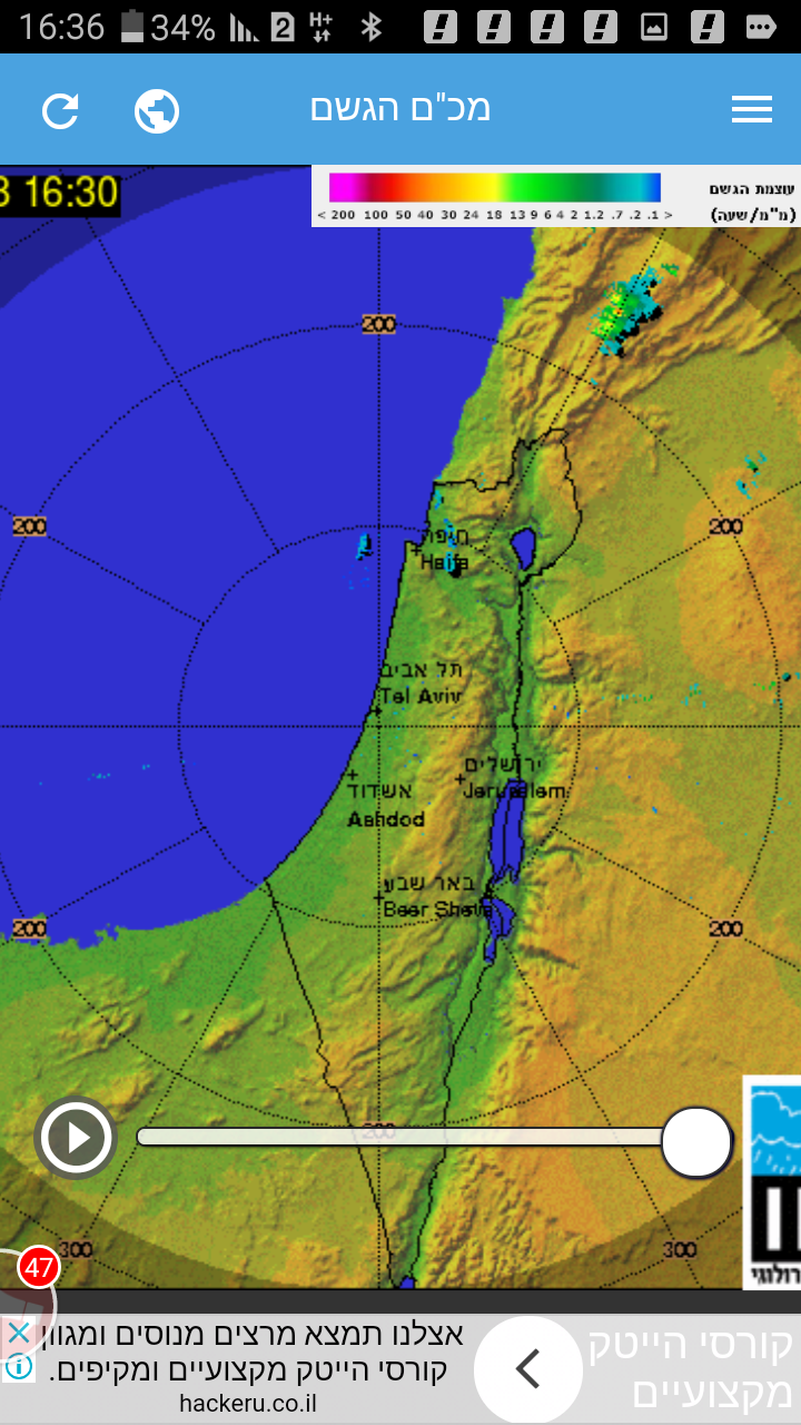 התחתון, גשם קל לחופי חיפה וגשמים חזקים בחרמון הסורי.