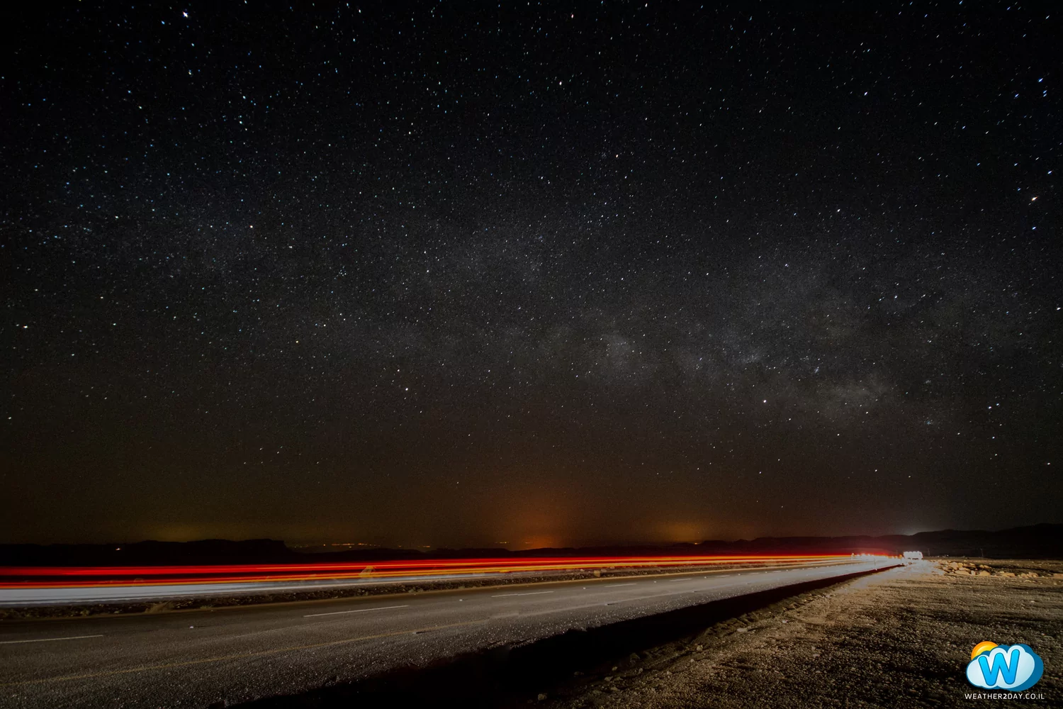 - מכתש רמון בשעת לילה מאוחרת מאוד הכוכבים ושביל החלב מאירים את השמיים Weather2day