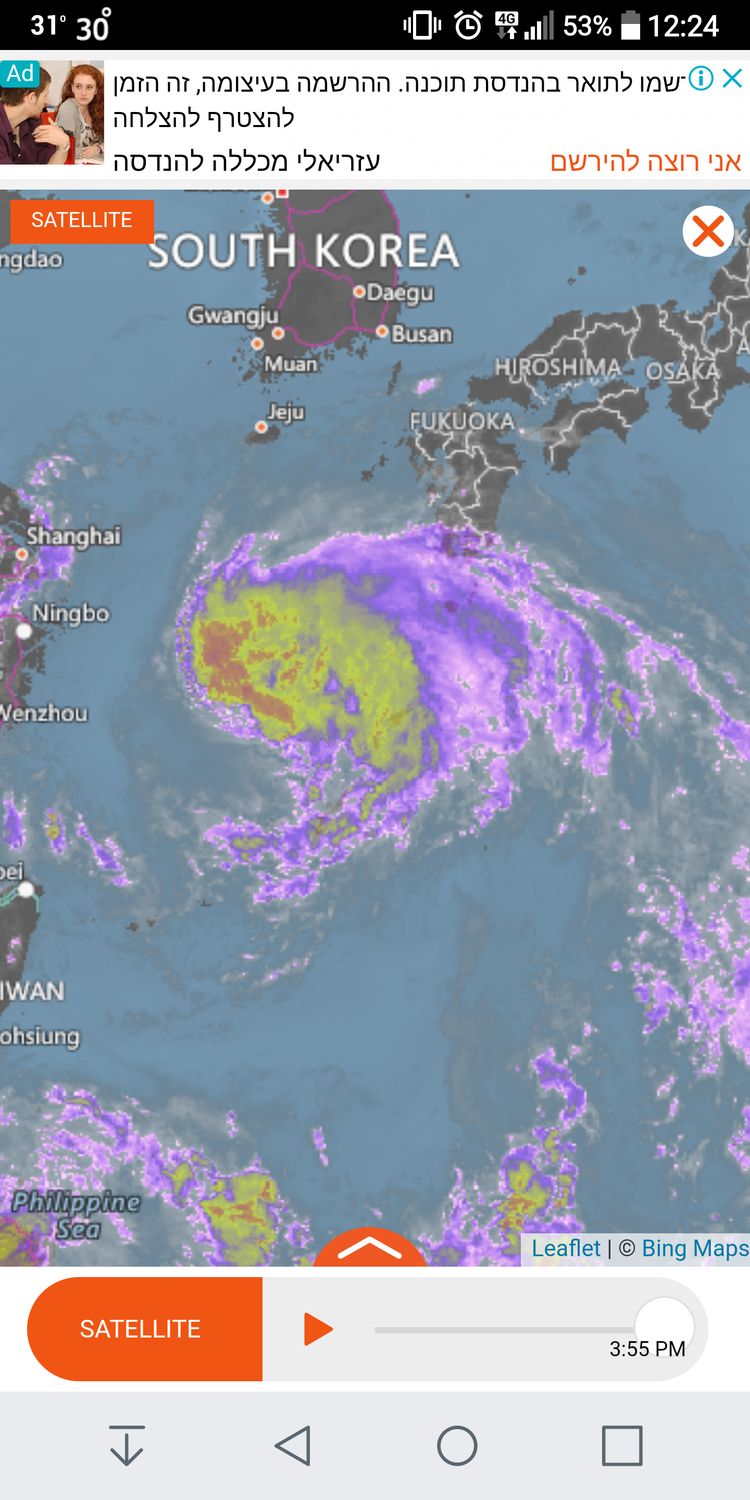 - תמונת לווין עדכנית של הסופה Ampil: נמצאת לא רחוק מחופי סין: מירן-נחלת יצחק