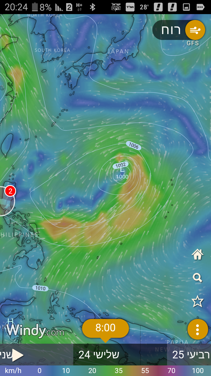 - לפי גפס הסופה הזאת (שכעת צפויה להפוך לטייפון) צפויה לנוע מירן-נחלת יצחק