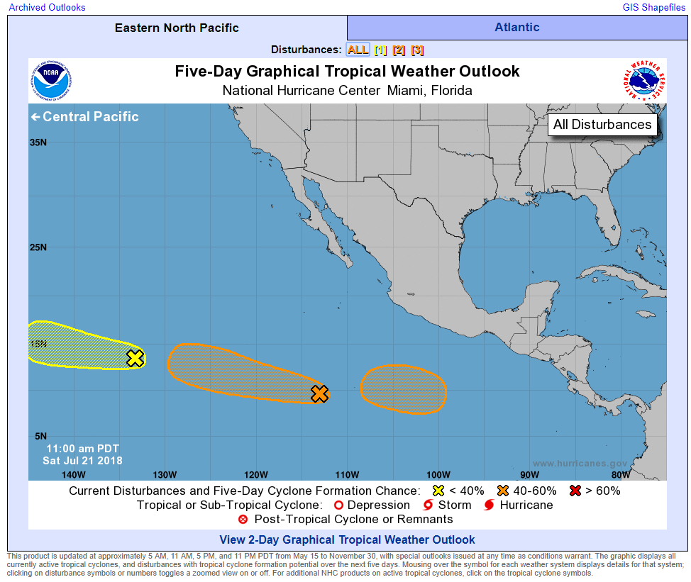 בנוסף יש סיכוי של 40 אחוזים להיווצרות סופה טרופית נוספת באוקיינוס השקט דרומית למקסיקו. ובנוסף סיכוי של 20 אחוזים להיווצרות סופה טרופית נוספת באוקיינוס השקט המזרחי ב5 הימים הקרובים: