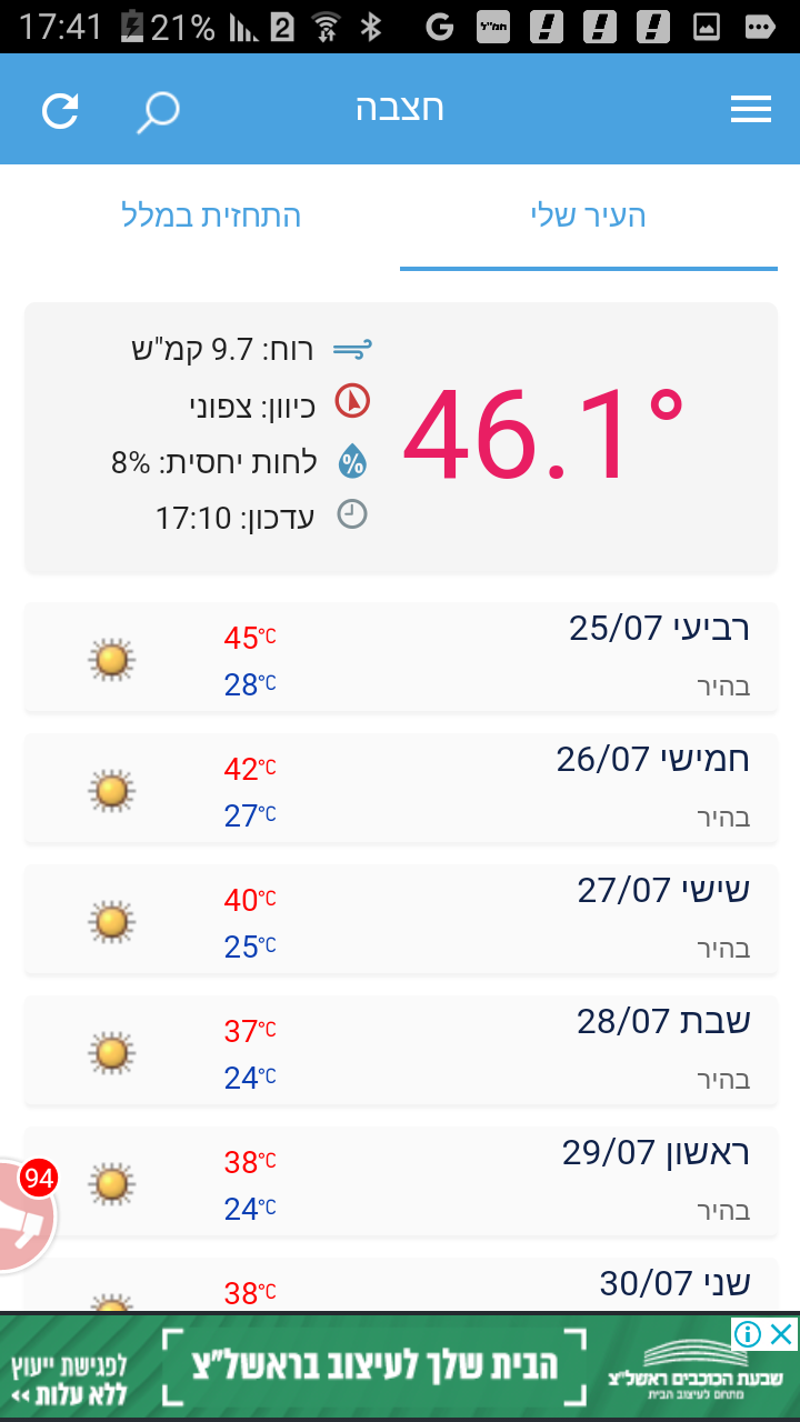 - אה אוקיי. לא ראיתי באף מקור שאמרו שיהיו היום 41 מעלות בתל אביב מירן-נחלת יצחק