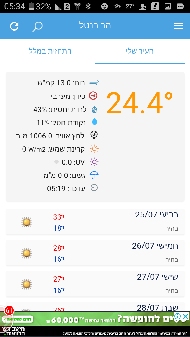 הטמפ' כעת עומדת על 24.6° עם 56% לחות