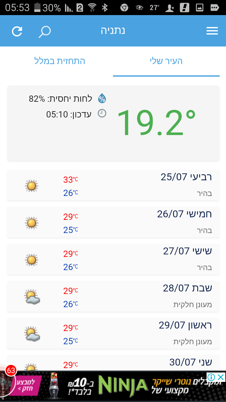 - דיווחי מזג האוויר - יום רביעי , 25.7.18 אריאל