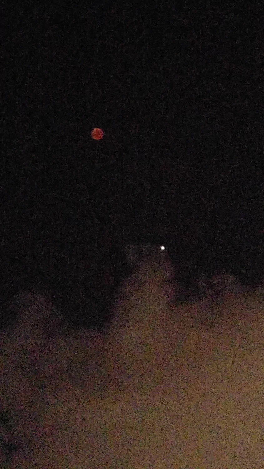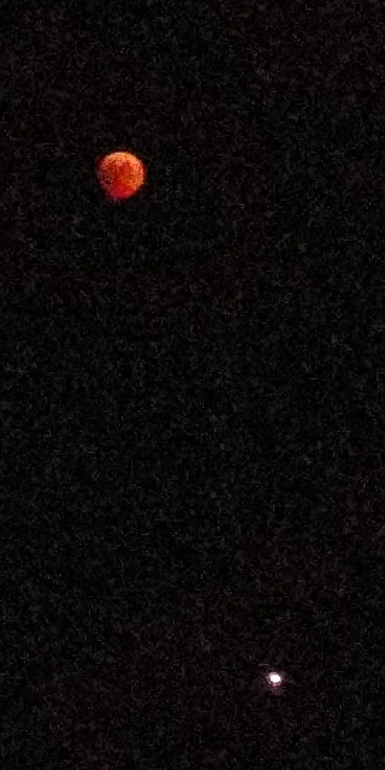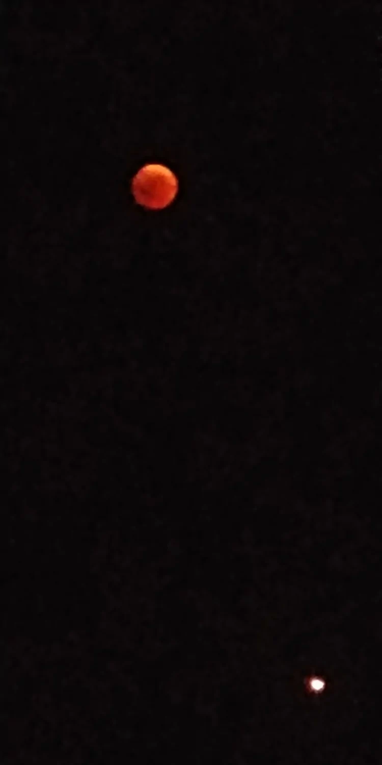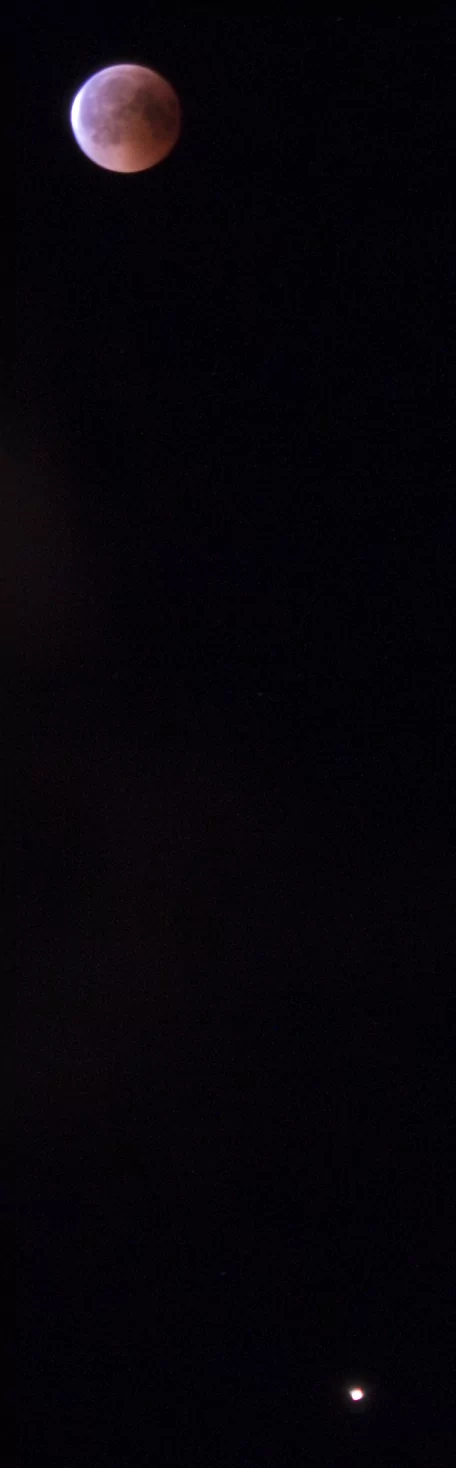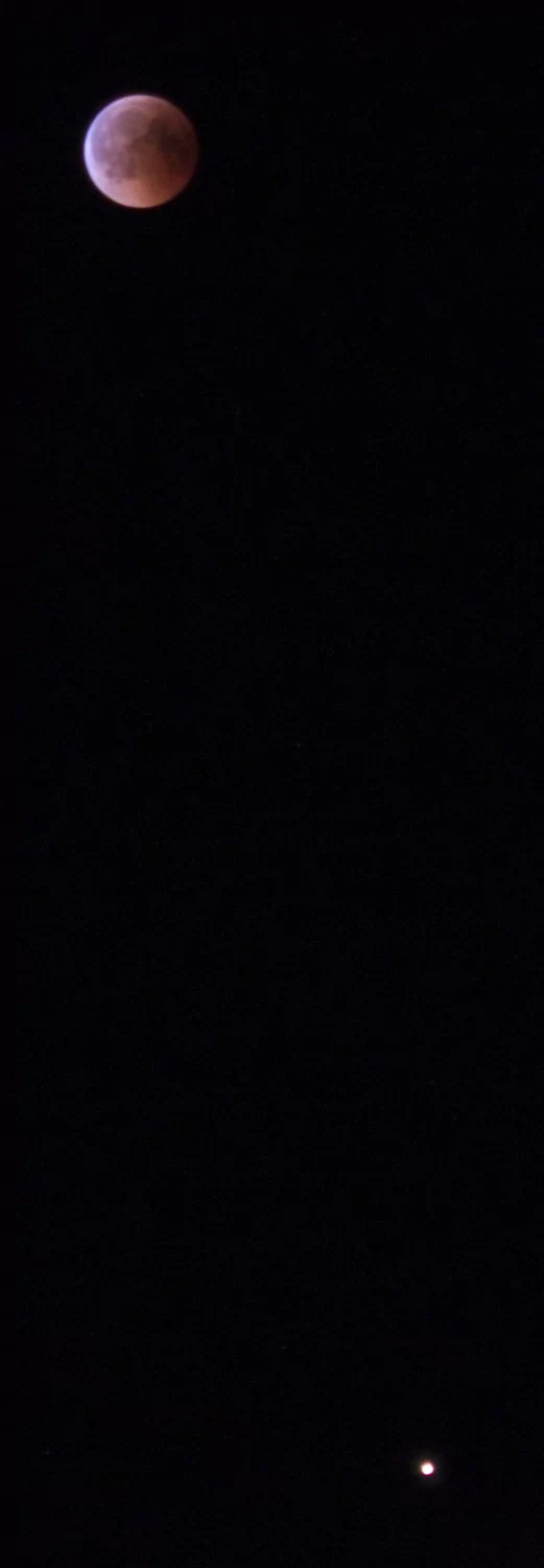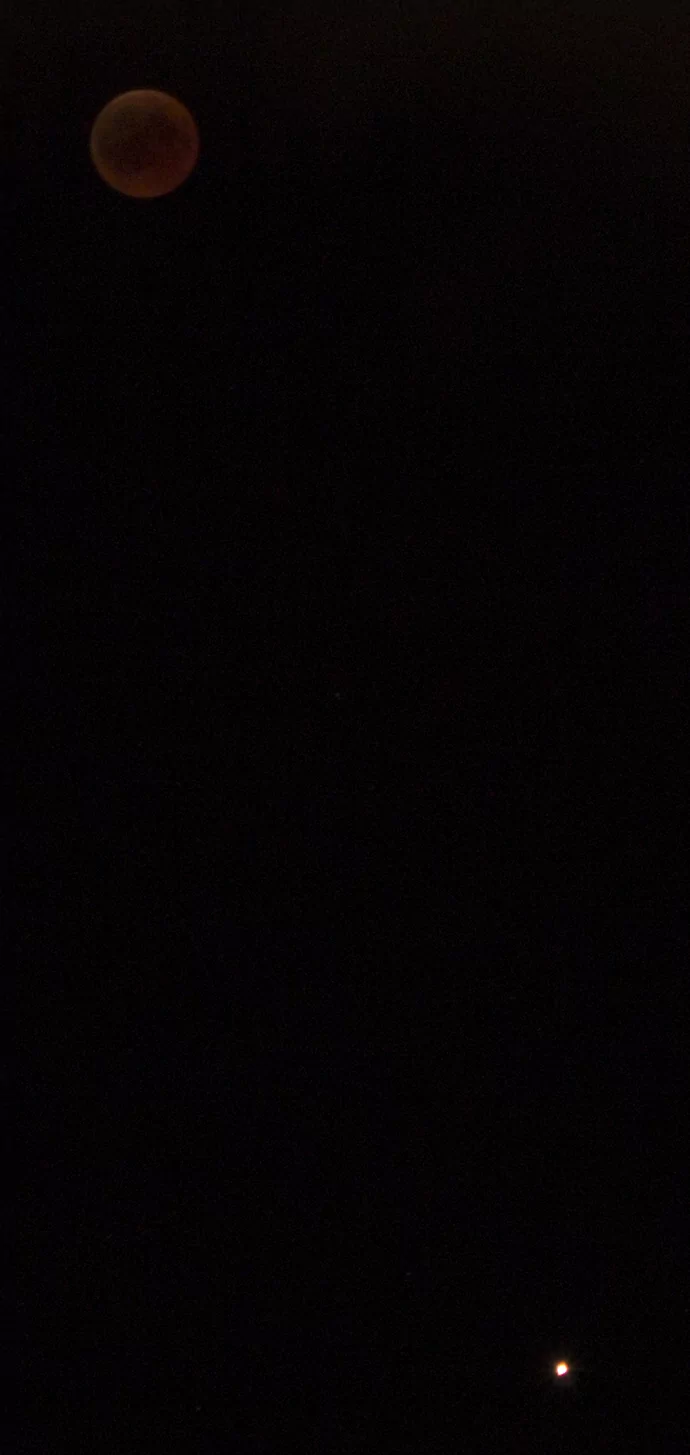 - הירח האדום בשיאו של הליקוי עם המאדים שנמצא מתחתיו אבי - פרדס כץ