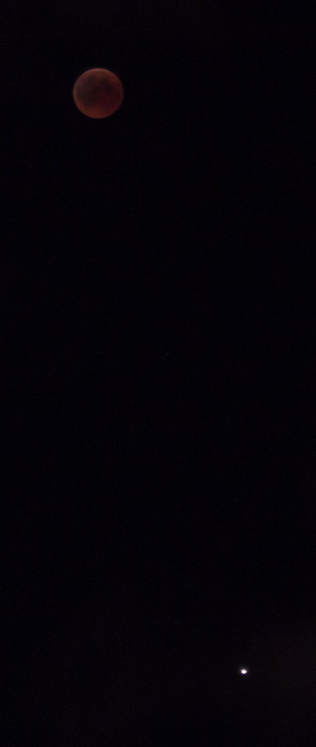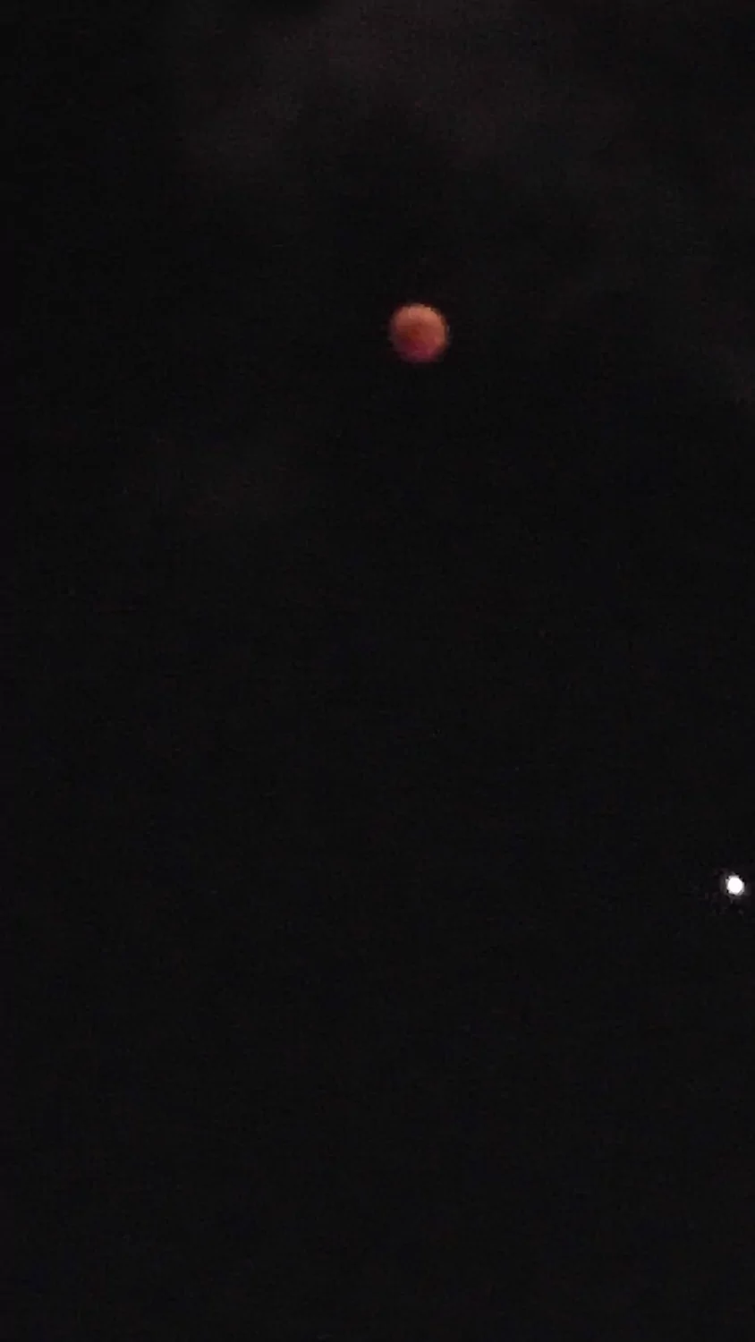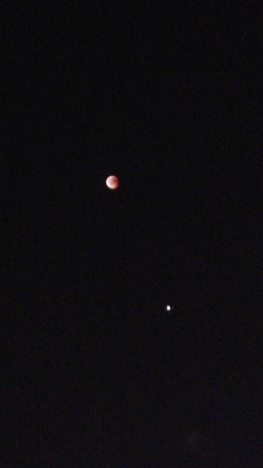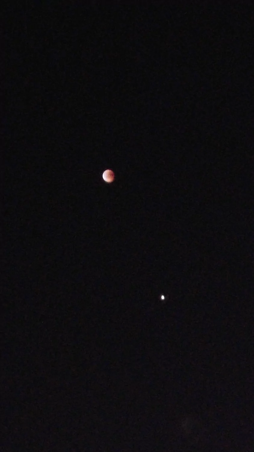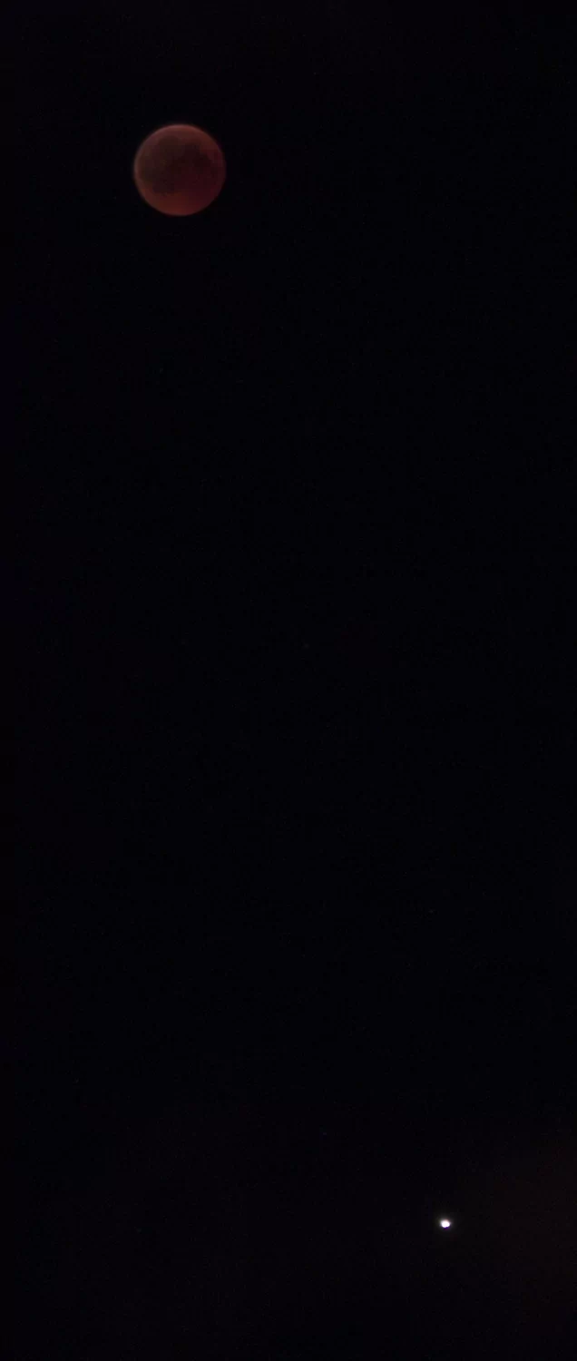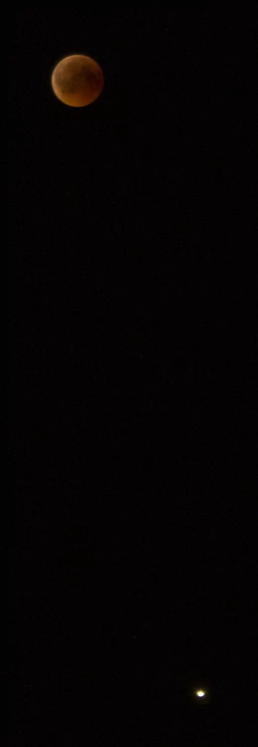 - הירח האדום בשיאו של הליקוי עם המאדים שנמצא מתחתיו אבי - פרדס כץ